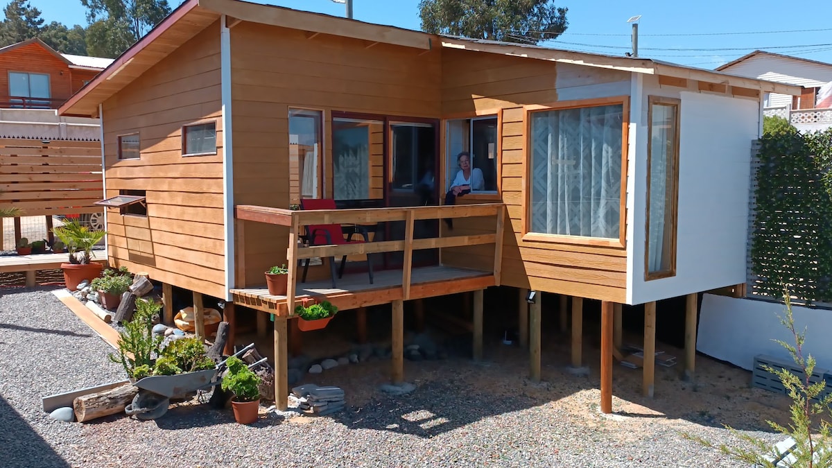 Cabaña de 1 ambiente ubicada en sector céntrico del Balneario de Las Cruces. A 2 cuadras de Playa Chica (Las Cadenas). Equipada para 2 personas. 1 Cama matrimonial Refrigerador, Calefont, Tv Cable MundoGo, Estufa a gas (Invierno), Calientacamas eléctrico, Balcón con hermosa vista a la quebrada. Sin estacionamiento propio. (Estacionamiento sitio cercano - Opcional) Servicio de internet (wifi)