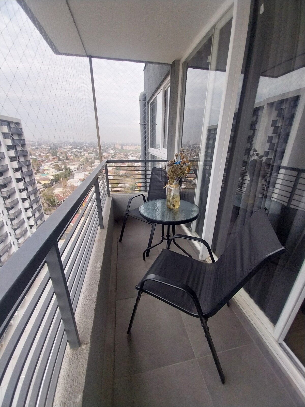 Hyggelig og lys lejlighed med balkon, udstyret med en queensize-dobbeltseng og en futon til en tredje gæst. Fuldt udstyret køkken Wi-fi 500 Mbps Smart-tv Gratis bagageopbevaring Kæledyrsvenlig Kun 3 minutter fra Departmental Metro, supermarkeder, restauranter og caféer ligger inden for gåafstand. Central motorvej kun 5 minutter væk. Nyd et fitnesscenter, grillområder og selvbetjent vaskeri i en sikker boligbygning med døgnåben concierge. God til par og længerevarende ophold. Book og oplev Santiago, som om du var hjemme!