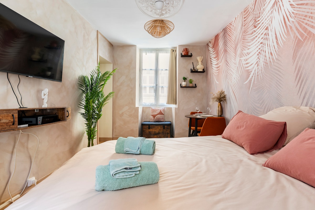 Charmerende atelierlejlighed på 23 m² på 3. sal i en historisk bygning i Nantes. Stue med sovesofa, smart-tv og Netflix. Indbygget køkken med ovn, mikrobølgeovn og køleskab. Brusebad med toilet og vaskemaskine. Beliggende i hjertet af byen (Bouffay og Commerce-distrikterne), tæt på butikker, restauranter og store turistattraktioner.