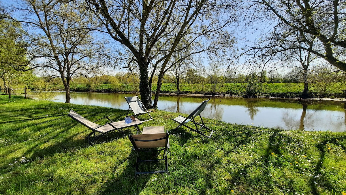 Face à la rivière, dans un petit village situé à 2 kms de la Loire, notre gîte vous permet d'être à 12 min d'Angers, 35 kms de Saumur, les zoos de la Flêche, Doué la Fontaine ainsi que Terra Botanica sont à environ 30 minutes. Vous serez sur le circuit des châteaux de la Loire, et vous pourrez découvrir les vignobles d'Anjou. Commerces de proximité dans le village (300m). Notre gîte dans un cadre bucolique et champêtre, est un lieu entièrement rénové pour votre confort, un vrai havre de paix !