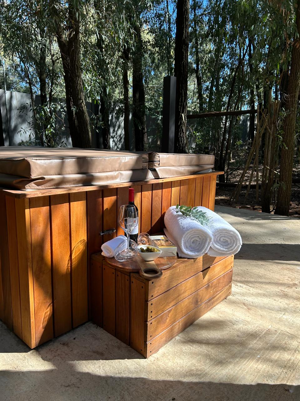 Oplev naturen, når den er bedst, i dette hyggelige, men luksuriøse trætopshus, der ligger i en majestætisk blå eukalyptus, der lader sollyset skinne blødt gennem trætoppene. Komplet med en stor terrasse, træfyret boblebad og indbygget træfyret grill. Den naturlige aroma, der er tilpasset den beroligende stilhed, vil efterlade dig åndeløs og godt udhvilet. Solenergi sikrer uafbrudt strømforsyning i dette fredelige træhus, 5 km til PTA East Hospital og forskellige restauranter og bryllupssteder i nærheden.