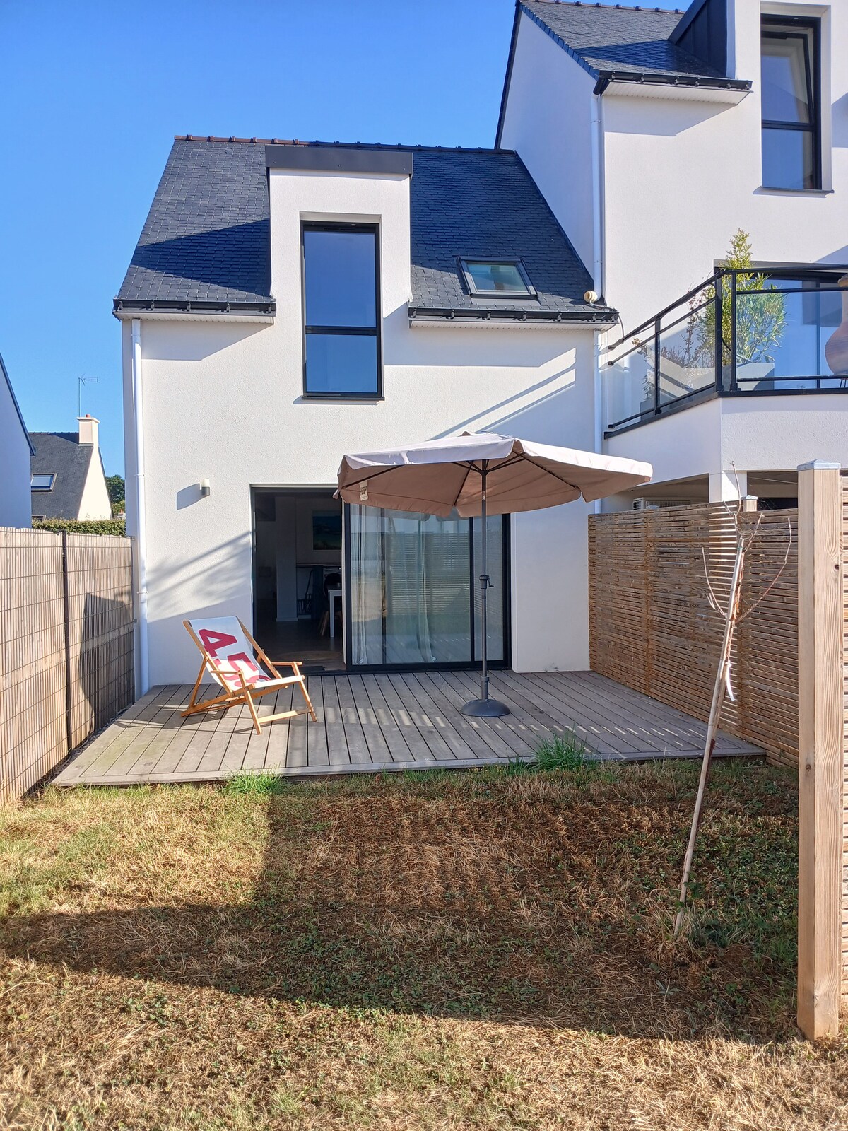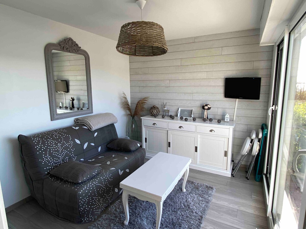 Vi vil med glæde byde dig velkommen i dette nye hus ved siden af vores eget, tæt på en af de smukkeste strande på kysten! Denne fuldt udstyrede bolig har 3 modulære soveværelser, der passer til familier, grupper af venner, forretningsrejsende og personer med nedsat mobilitet. Den har en sovesofa i stuen og 2 badeværelser. Terrassen med grill vender mod syd. Stranden ligger 400 m væk og butikkerne mindre end 1 km væk. Parkering foran indgangen