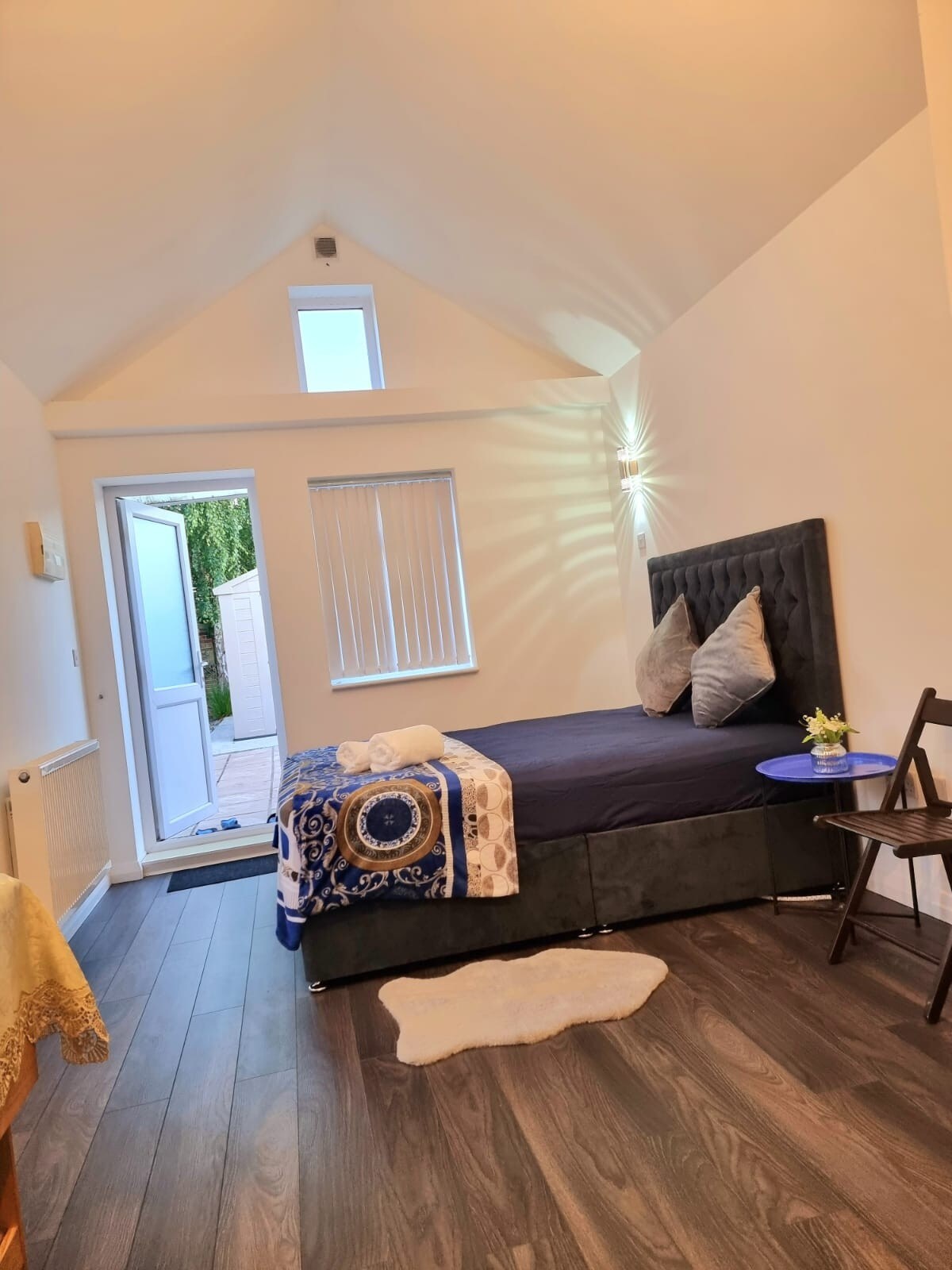 Slap af med hele familien i dette fredelige overnatningssted. Stedet har sin egen køkkenplade (uden komfur), eget badeværelse, egen indgang, køleskab, mikrobølgeovn, kedel, brødrister, tv og alt, hvad du har brug for til dit behagelige ophold. Stedet ligger tæt på butikker og let tilgængeligt med offentlig transport til det centrale London og Heathrow. Dagligvarebutikker Nisa Local, khushi Local er 0,5 miles, Ashford high street, som har masser af restauranter og antal butikker, fitnesscenter er 0,5 miles til fods er 10-12 minutter.