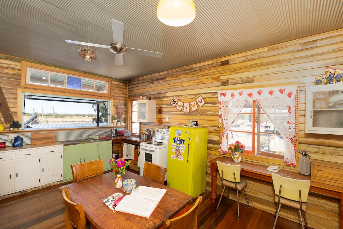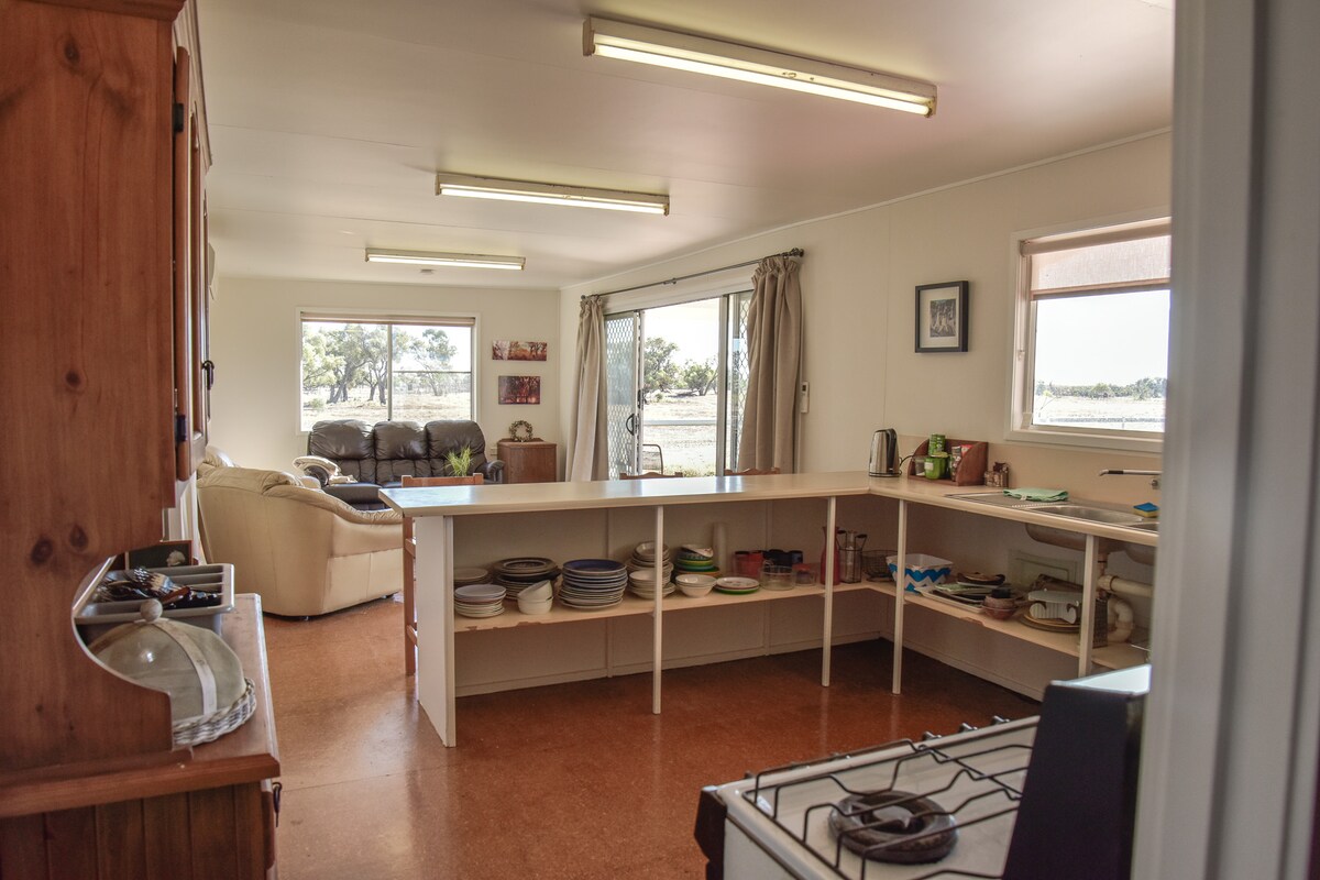 Crackup Sisters-huset er et unikt ophold i Outback, fyldt med muligheder for at få dig til at grine! Et unikt bygget hjem med genbrugte træer og møbler doneret af vores venner rundt omkring i Australien. Meget behagelige senge, sengetøj og håndklæde, varmt og koldt vand og køkken til at piske dig op. Tal med os om dine kæledyr ( og børn ), vi kan få alle til at føle sig godt tilpas og føle, at du er sammen med familien. Hvis der er mere, så giv os et kald, så kan vi hjælpe dig.