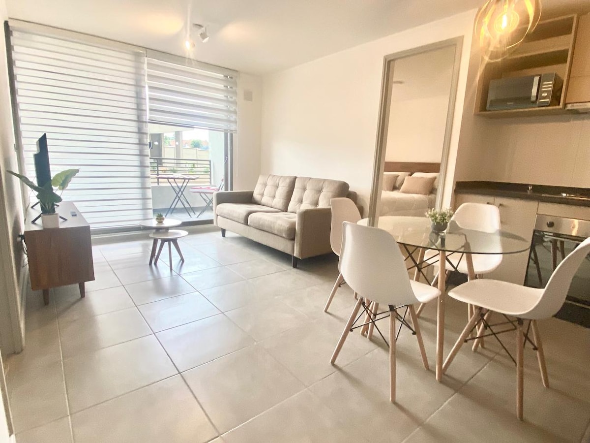 Encantador departamento con sala de estar equipada, una terraza increíble y un cómodo y acogedor dormitorio (cama king) con baño en suite, diseñado para ofrecerte una experiencia única. En este espacio también contarás con acceso exclusivo a una hermosa laguna. A solo 5 minutos de supermercado, strip center y terminal, tendrás todo lo que necesitas a tu alcance. Lo que te ofrecemos: 🚗 Estacionamiento privado 🔑 Conserjería 24/7 🛜 Wifi de alta velocidad 🏞️ Acceso directo a la laguna