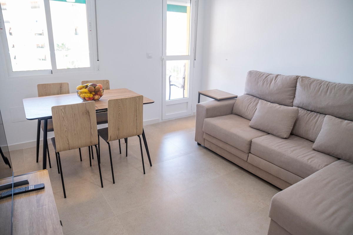 Smuk nyrenoveret lejlighed beliggende ved havet i kystbyen Águilas. Den består af to værelser, et med to enkeltsenge og et med en seng på 1,50 cm. Uafhængigt køkken udstyret med alle apparater og et badeværelse med brusebakke. Der er en vaskemaskine og en rummelig balkon med udsigt over havet. Sofaen kan bruges til at sove i ved at tage sæderne ud. Den er udstyret med aircondition og varmekanal. Der er også loftsventilatorer.