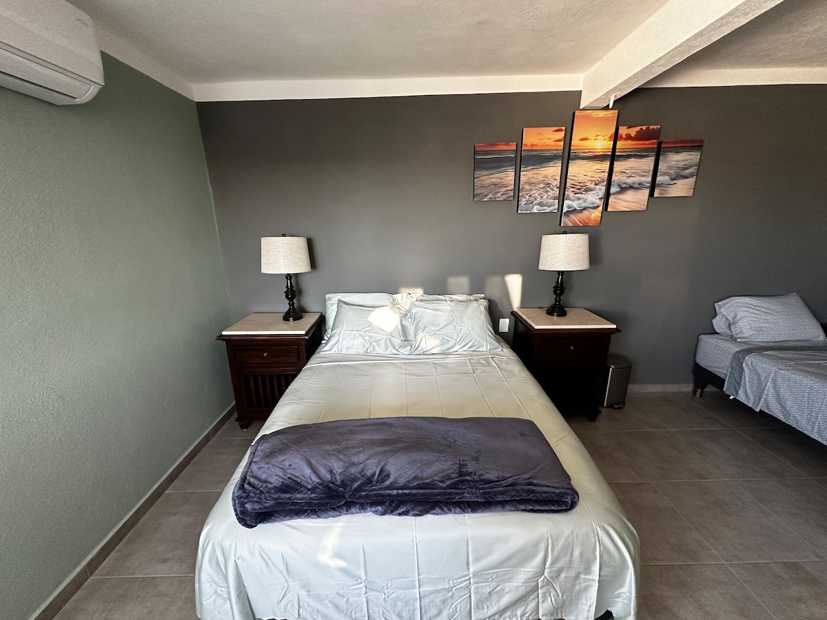 Cabo Lindo Studio, Det ligger 2 minutter fra San José Lufthavn (Los Cabos Lufthavn). Offentlig transport 20 meter væk Det er ideelt til at slappe af før eller efter din flyrejse, arbejde, forretning eller fornøjelse. Lejligheden er udstyret med queensize seng, smart-tv, wi-fi, aircondition, komplet køkken, spisestue og sovesofa. Anden sal (trapper). Privat parkering. På vej tilbage finder du oxxo, apoteker, tankstationer og restauranter. 15 km fra San Josés centrum og strande