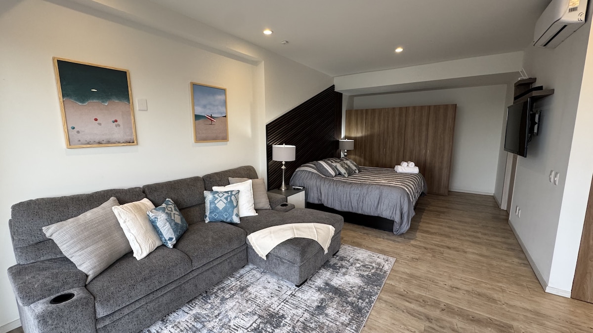 Slap af i dette eksklusive luksusloft i hjertet af Colomos Providencia. Beliggenheden i Colomos Providencia er tæt på parker, restauranter, indkøbscentre og det bedste i Guadalajara. Ideel til korte eller lange ophold, uanset om det er til fritid eller forretning. Den er designet til komfort og stil og har højhastigheds-wifi, et fuldt udstyret køkken, tv, aircondition, privat parkering og sikkerhed døgnet rundt.