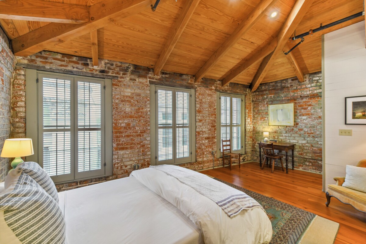 Dette smarte loft i stueplan i det historiske Algiers Point kombinerer hyggelig charme med moderne komfort. Nyd en kingsize-seng, fuldt udstyret køkken, hurtig wi-fi, 65" smart-tv, pladespiller og luksuslinned. Et par skridt fra caféer, Barracuda-tacos og solnedgange over Mississippi-floden plus en færgetur til 2 dollars til Bourbon Street, Frenchmen jazzklubber, Mardi Gras-parader og højtidsfestligheder. Perfekt til par eller solorejsende, der søger et autentisk NOLA-tilflugtssted tæt på Quarter.