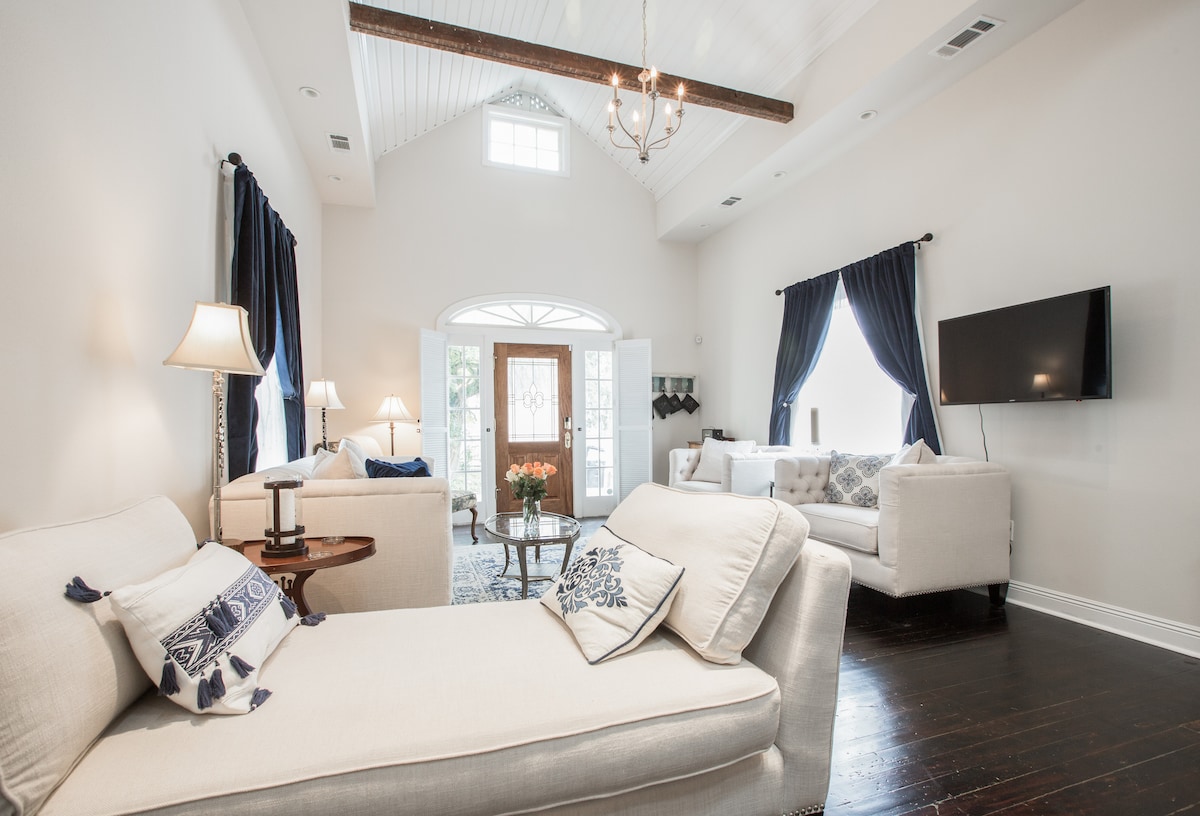 Private gæstekvarterer omfatter 4 soveværelser og 5 badeværelser, 14' lofter, gamle pejse, skydedøre og balkoner, et eklektisk og unikt ophold, der indfanger ånden i det gamle New Orleans. Levende farver og en blanding af kuraterede antikviteter med et strejf af moderne, rummelige interiører giver moderne bekvemmeligheder og et fuldt udstyret køkken. Vores opvarmede saltvandspool er omgivet af frodige tropiske haver og terrasser med flere siddeområder og liggestole.