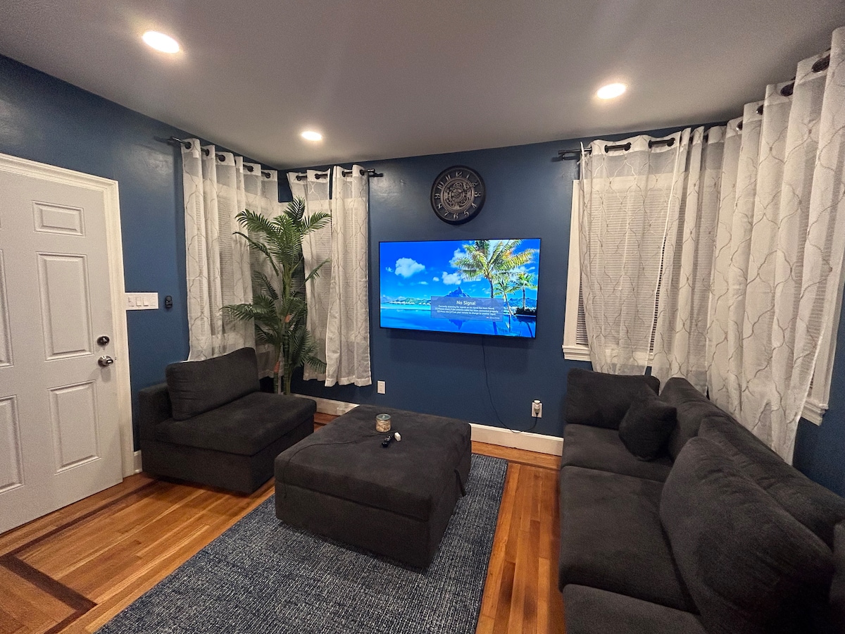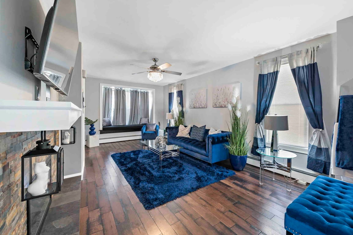 Velkommen til et roligt fristed i Allentown, PA, ideelt beliggende på Hamilton Blvd, hovedgaden nær større motorveje, men alligevel tilbyder en fredelig flugt. Denne lejlighed på 950 kvadratmeter med 2 soveværelser og 1 badeværelse ligger på den nederste etage i det elskede "Little Blue Guest House" og har en kingsize-seng i det ene værelse og en dobbeltseng i det andet, der kan rumme op til fire gæster. Den har et fuldt udstyret køkken og lyse sydvendte vinduer, der gør dit ophold virkelig behageligt, samtidig med at du er tæt på alt.