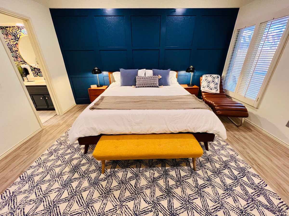 Træd ind i komforten i dette stilfulde 2BR 2BA hjem beliggende i Lubbocks fineste kvarter, LakeRidge Country Club. I nærheden af 82nd og Quaker og omgivet af mange af Lubbocks bedste restauranter og shopping, 10 minutter fra Texas Tech og det medicinske distrikt. Et MidMod-design og en rig facilitetliste vil tilfredsstille alle dine behov. ✓ 2 komfortable soveværelser ✓ Åbent koncept ✓ Komplet køkken Arbejdsplads på✓ barbord ✓ Parkering i garage ✓ Baggård (grill, cornhole, minigolf) ✓ Højhastigheds-Wi-Fi ✓ Smart-tv