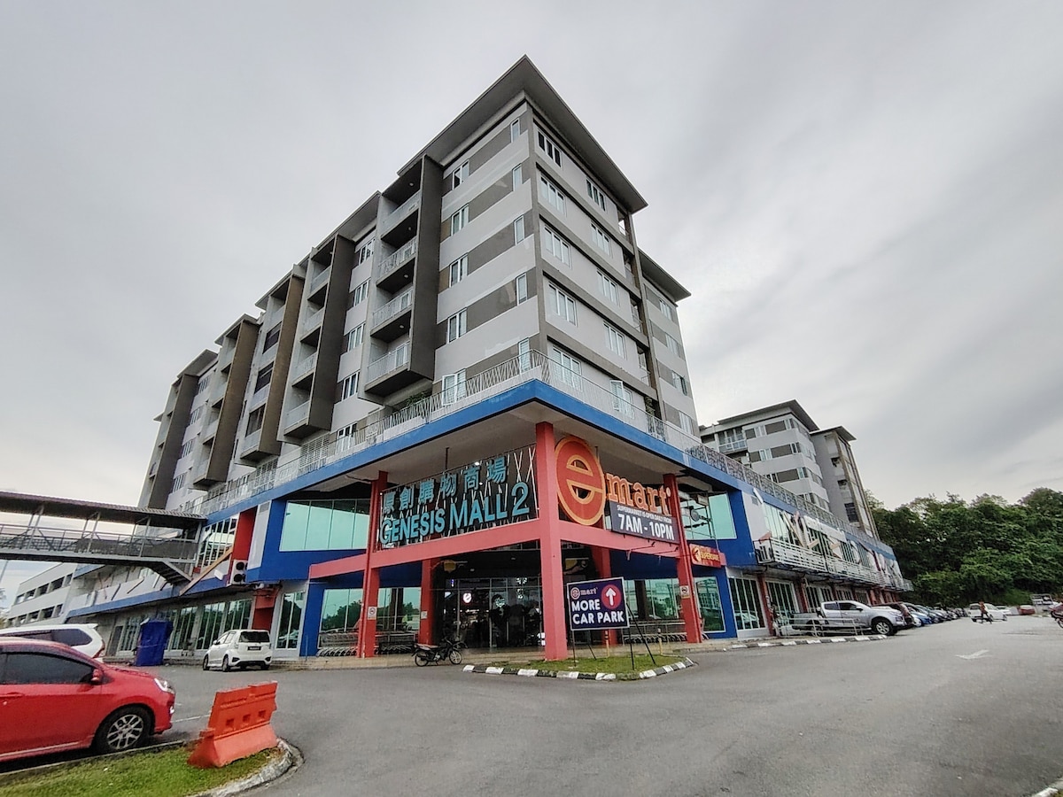 Enjoy a clean and cozy stay in our new studio! Relax with hot showers, a refreshing pool, and a gym. We wash all bedsheets & pillowcases after every stay for your comfort. Aeon Shopping mall is only within 5mins walking distance and a lot restaurants, bars and shops downstairs. Driving to: *Timberland Hospital 5mins *Sarawak General Hospital 6mins *Borneo Medical Center 8 mins *Borneo Cultural Museum 10mins *The Spring shopping mall 10mins *Vivacity 12mins * Waterfront Kuching 10mins