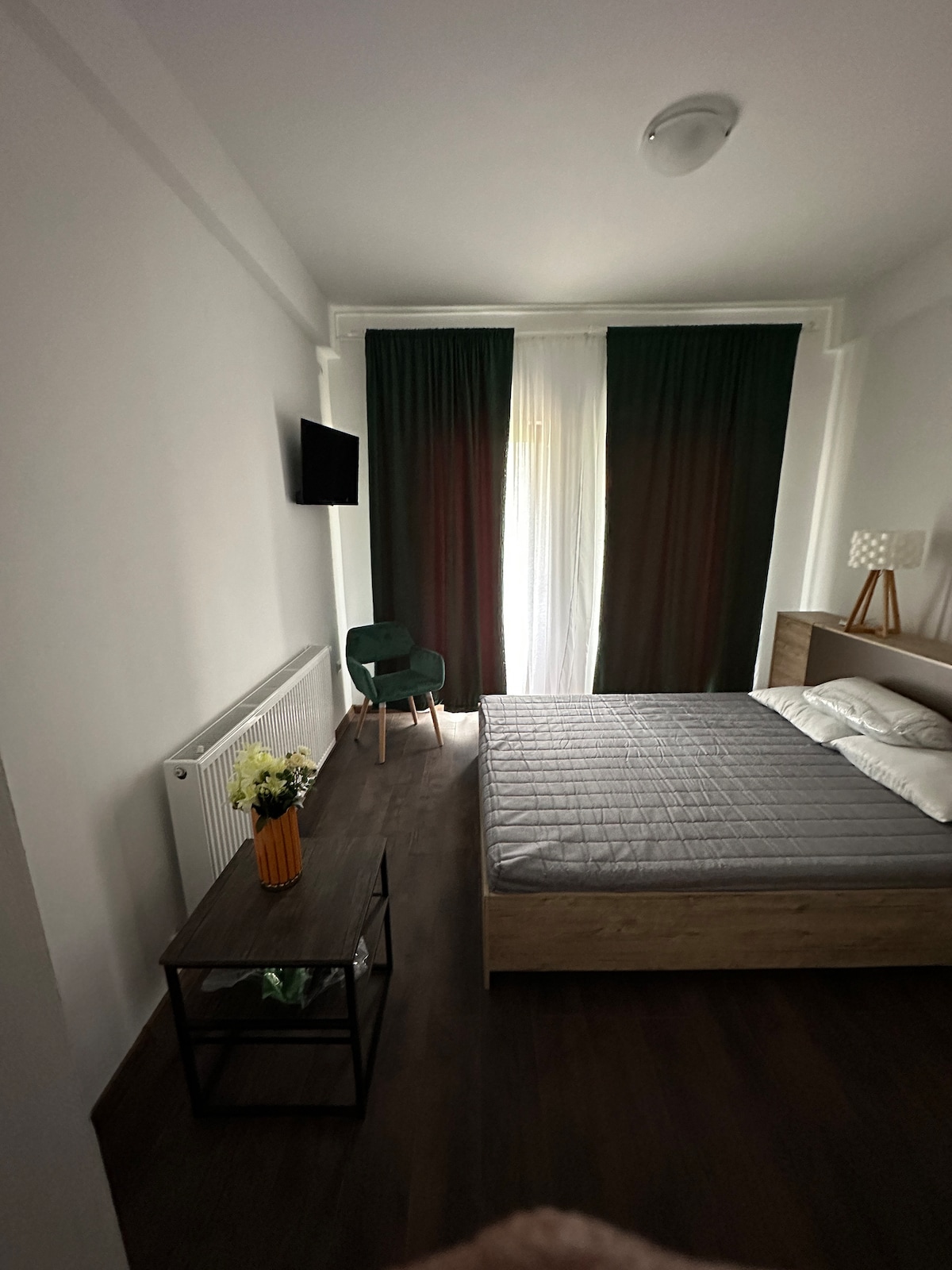 Cladirea este noua, cu etaj, iar la parter se afla livingul cu bucatarie. Oaspetii au la dispozitie o bucatarie comuna si acces la gratarul amenajat in curte. Pentru cazare sunt amenajate 6 dormitoare din care 4 matrioniale si 2 cu cate 2 paturi single, cu tot confortul necesar turistului aflat in tranzit: parcare, baie cu dus in camera, tv, internet wireless, etc.
