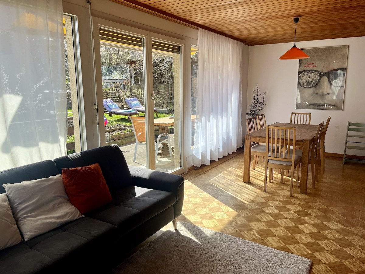Den nye og meget velholdte 3-værelses lejlighed med egen indgang og privat parkeringsplads ligger i en rolig beliggenhed på bygrænsen til byen Luzern. Der er et busstoppested i umiddelbar nærhed. Lejligheden har en hyggelig halv overdækket have med udsigt over det grønne. Den er perfekt til par, familier og turister, der ønsker at udforske byen Luzern og dens omgivelser. Vi stiller gerne et barnesæde og en barneseng til rådighed for børn på anmodning.