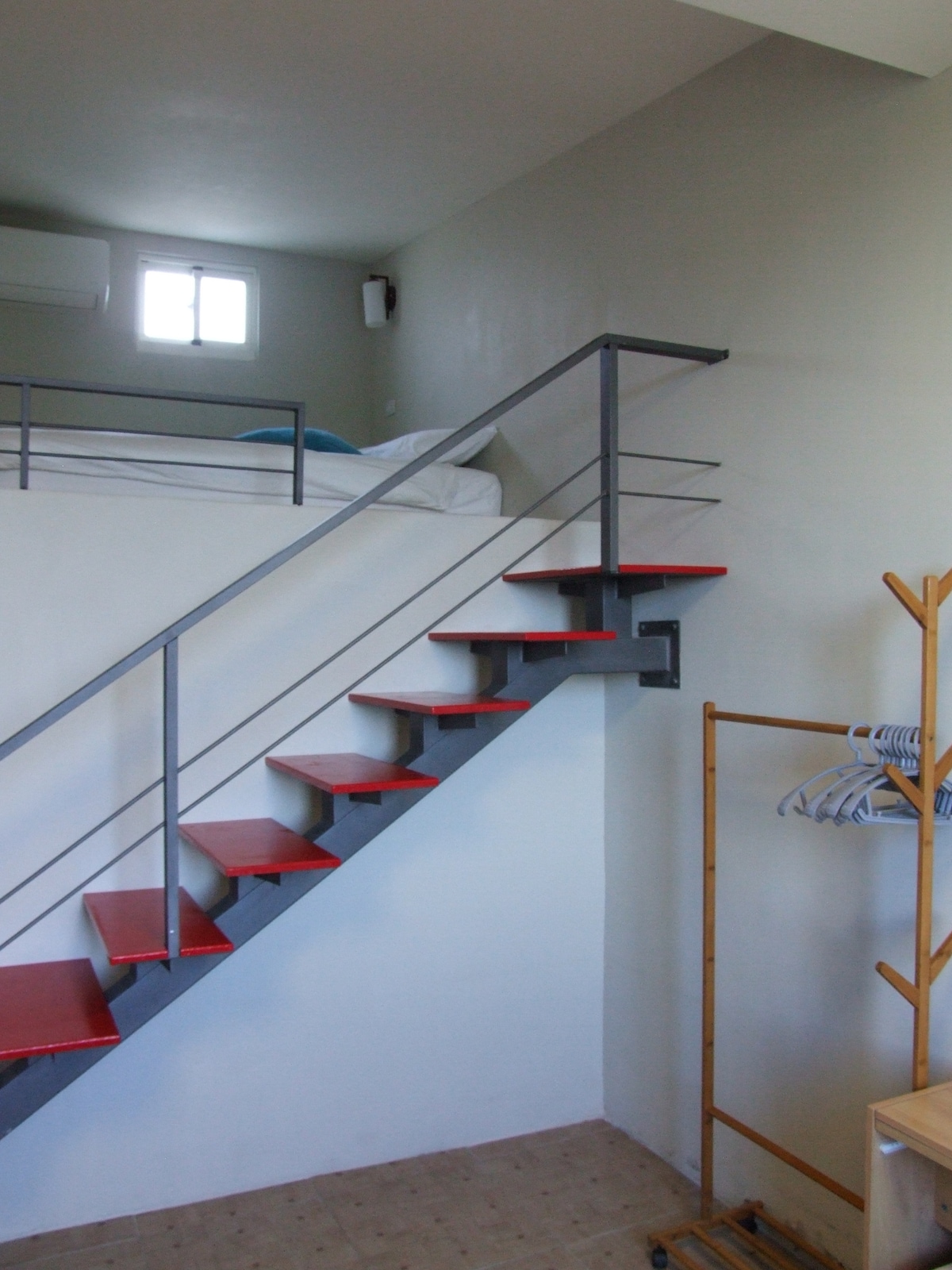 302- Et fire-personers værelse på den midterste etage af højhuset, med udsigt ud af det store vindue ved sengen, udsigten over tredje sal i gyden er altid overraskende, og du kan se din egen udsigt i det hjørne af rummet.