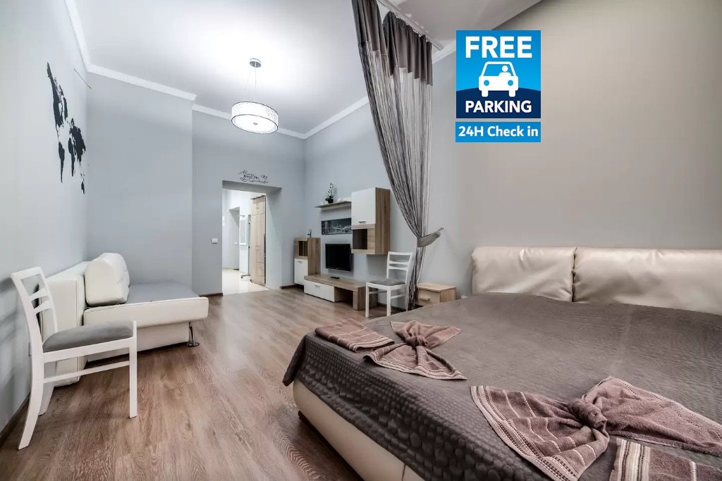 Mit navn er Oksana. Velkommen til en hyggelig etværelses lejlighed i Lvivs historiske centrum! Dette sted ligger ved siden af cirkus og stationen og er perfekt. En stille gade og balkon med udsigt til haven skaber en atmosfære af ro. Lejligheden er udstyret med alt, hvad du har brug for til et behageligt ophold, herunder køkkenapparater. Autonom opvarmning er installeret, hvilket garanterer varme og hygge når som helst på året. Der er legepladser og butikker i nærheden. Vi byder gæster velkommen med kæledyr. Jeg glæder mig til at møde dig!