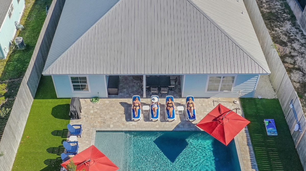 1 minut til stranden|privat opvarmet pool|6BR 5Ba