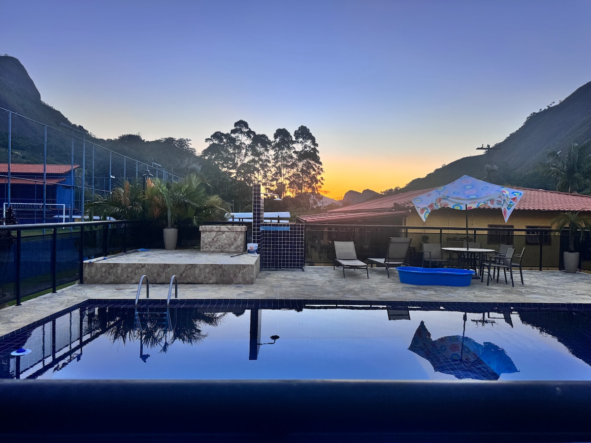 Vores hus er i en gård på bredden af Macaé-floden, nær Barra do Sana, på Estrada Velha do Sana, med grill, jacuzzi , swimmingpool, direkte adgang til floden, hængekøje, i et meget smukt sted, internet med wifi. Det er i en dal, på bredden af Macaé-floden, omgivet af smukke bjerge, med en masse indfødte fauna og flora. Bedøvelse. Læs omtaler fra gæster, der har boet hos os.