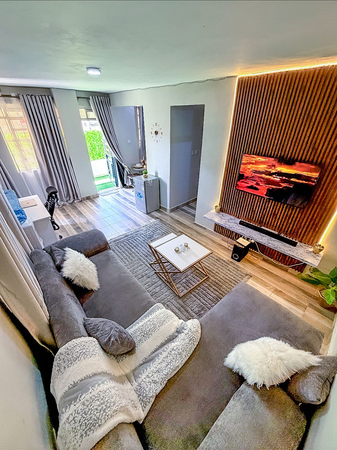 Velkommen til "The Green Nook". Vores moderne lejlighed med 4 soveværelser på Garden City Residences i Nairobi tilbyder et rummeligt, behageligt ophold med stilfuldt interiør. Åbent opholdsområde, et fuldt udstyret køkken og tre velindrettede soveværelser. Nyd faciliteter som højhastigheds-wi-fi, sikker parkering, en swimmingpool og et fitnesscenter. Vi er beliggende i Garden City Mall, og det er tæt på shopping, spisning og vigtige Nairobi-attraktioner, hvilket gør det til et perfekt valg for både forretnings- og fritidsrejsende.