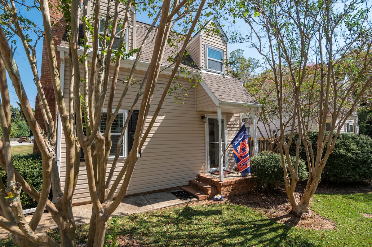 Velkommen til din ferie i Auburn! Denne moderne, hyggelige hytte med to soveværelser og et badeværelse har et fuldt udstyret køkken, udendørs grill og dedikeret arbejdsplads med to skærme og printer. Loftet ovenpå har stor skærm-tv og minikøleskab. Det er perfekt til weekendkampe, familiebesøg, arbejdsrejser eller stille ferier. Kun få minutter fra Auburn University, I-85 og spisning i centrum. Slap af, få ny energi, og nyd den smukkeste landsby på sletterne. Parkering for 2 køretøjer.