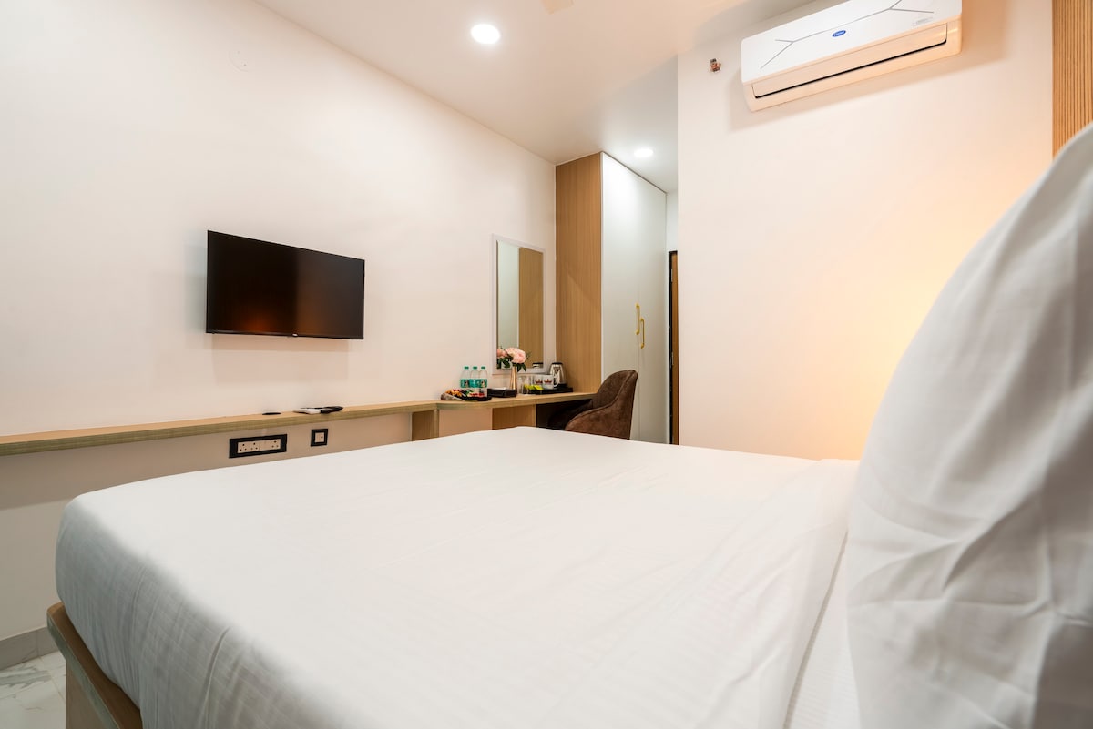 Oplev luksus og komfort i vores Executive Suite i Hyderabad, der er perfekt til forretningsrejsende eller par, der søger et førsteklasses ophold. Denne elegant indrettede suite har et rummeligt soveværelse, moderne badeværelse, højhastigheds-wifi, aircondition og et dedikeret skrivebord. Beliggende i et førsteklasses område med nem adgang til IT-hubs, indkøbscentre og restauranter, tilbyder det både bekvemmelighed og klasse.