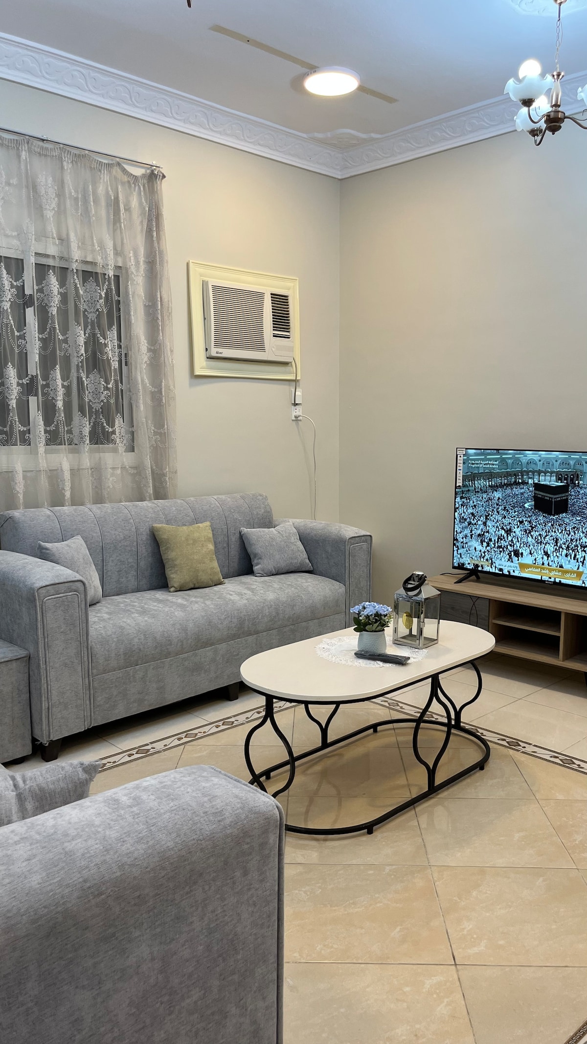 Oplev en rummelig og ren lejlighed kun 2 km fra Profetens Moske, ideel til muslimske familier og grupper, der besøger Madinah. Nyd moderne komfort med fuld AC, smart-tv, komplet køkken og egen indgang. Dette fredelige område ligger i Qurban-distriktet nær Quba-moskeen og Ghars-brønden og tilbyder nem adgang til hellige steder, butikker og lokale restauranter – perfekt til dit ophold i Madinah.