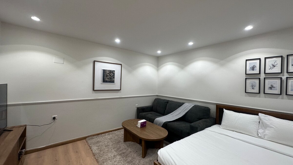 Rolig lejlighed bestående af et luksuriøst soveværelse, stue, fuldt udstyret køkken til at tilberede dine yndlingsretter og et badeværelse - Det ligger 5 minutter i bil fra Profetens Moske og 3 minutter i bil fra Quba Moske og meget tæt på Quba promenade og Juma Moske 🕌 - Alle tjenester, restauranter og butikker er tilgængelige 24 timer i døgnet - Sofa til afslapning - 65 tommer smart skærm tilsluttet wi-fi - Smartskærmen indeholder alle Netflix- og YouTube-apps Vi ønsker dig et godt ophold...