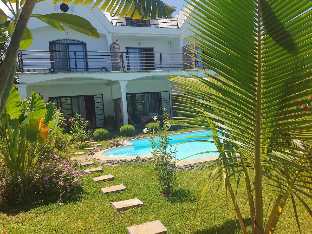 Mindre end 300 m fra den store strand Madirokely, er dette smukke hus beliggende i en stor lukket have på 4.000 m² ideel til at tilbringe ferie med familie eller venner. Du kan bestille din morgenmad og/eller dine måltider fra vores gæstebordsleder. I en smukt vedligeholdt have kan du nyde en swimmingpool og en boccebane. Uden ekstra omkostninger vil du få højhastigheds-wi-fi.