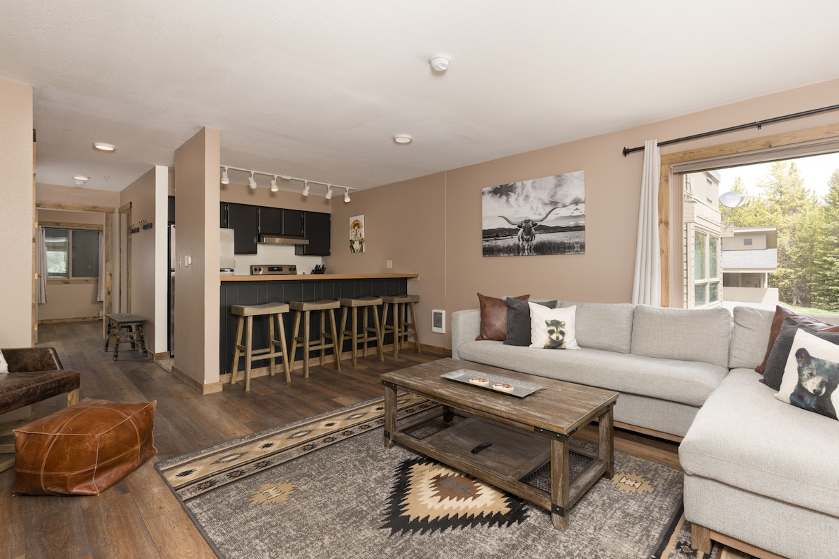 Skycrest 1715 ligger i hjertet af Big Sky og er en hyggelig skihytte i det vestlige Montana, der blander rustik bjergcharme med moderne komfort. Denne varme og indbydende alpine feriebolig har betagende bjergudsigt, en pejs og er i uovertruffen nærhed af løjperne. Denne lejlighed med tre soveværelser er indrettet som en klassisk Big Sky-hytte og er den perfekte base for familier og venner, der søger eventyr året rundt – uanset om du er her for at stå på ski, vandre eller bare slappe af ved pejsen.