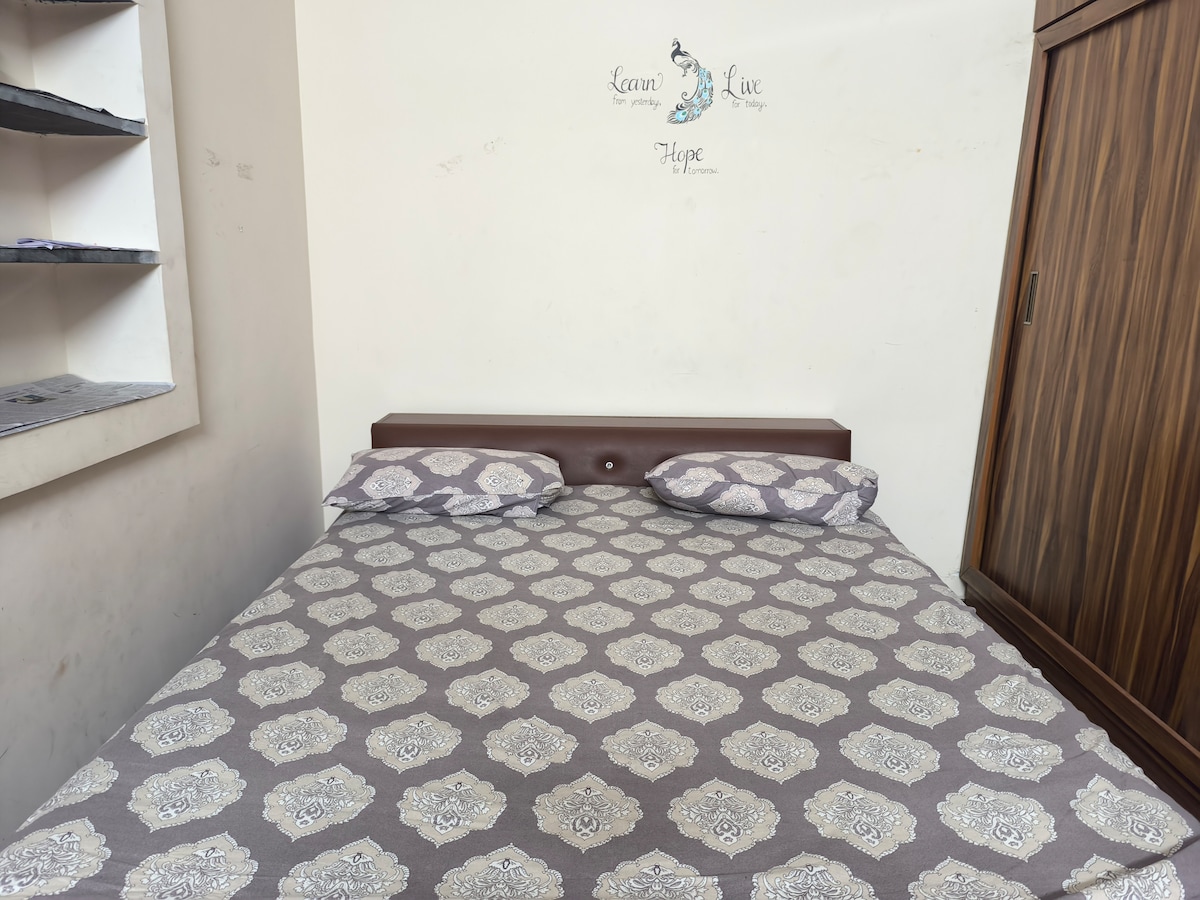 Slap af med dette fredfyldte overnatningssted med airconditioneret soveværelse - selvstændigt – Særpriser for længerevarende ophold – 30 % rabat på 1 måned og 10 % på 1 uge – kontakt os for at få flere oplysninger - I nærheden af ELCOT IT Park, Apollo Hospital, HCL, Honeywell IT-virksomheder, butikker, hoteller og restauranter - Roligt, sikkert, pænt sted væk fra den støjende bymidte for familier - Egnet til fagfolk inden for længerevarende ophold - Aircondition, dobbeltseng, stue, køkken og badeværelse, moderne skab, elektrisk kogeplade, varmt vand.