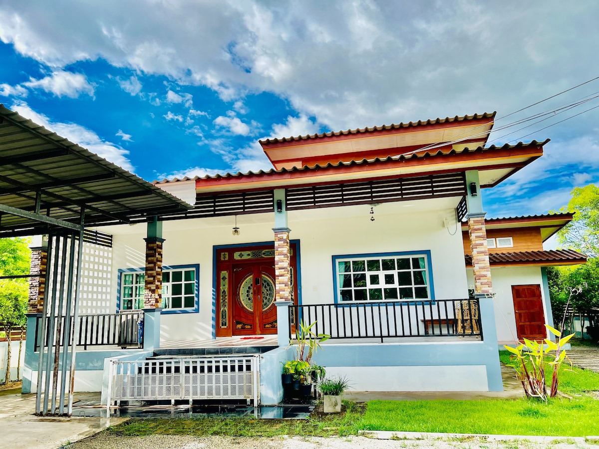 Hus med to soveværelser og kingsize-dobbeltseng 2 badeværelser med aircondition, højhastighedsinternet og faciliteter. Det føles, som om du slapper af i et hus på landet midt i en dal, som om du slapper af i dine slægtninges hus. Hele familien kan rejse, når de bor i byens centrum. Sikker. Kun 10 minutters gang til centrum.