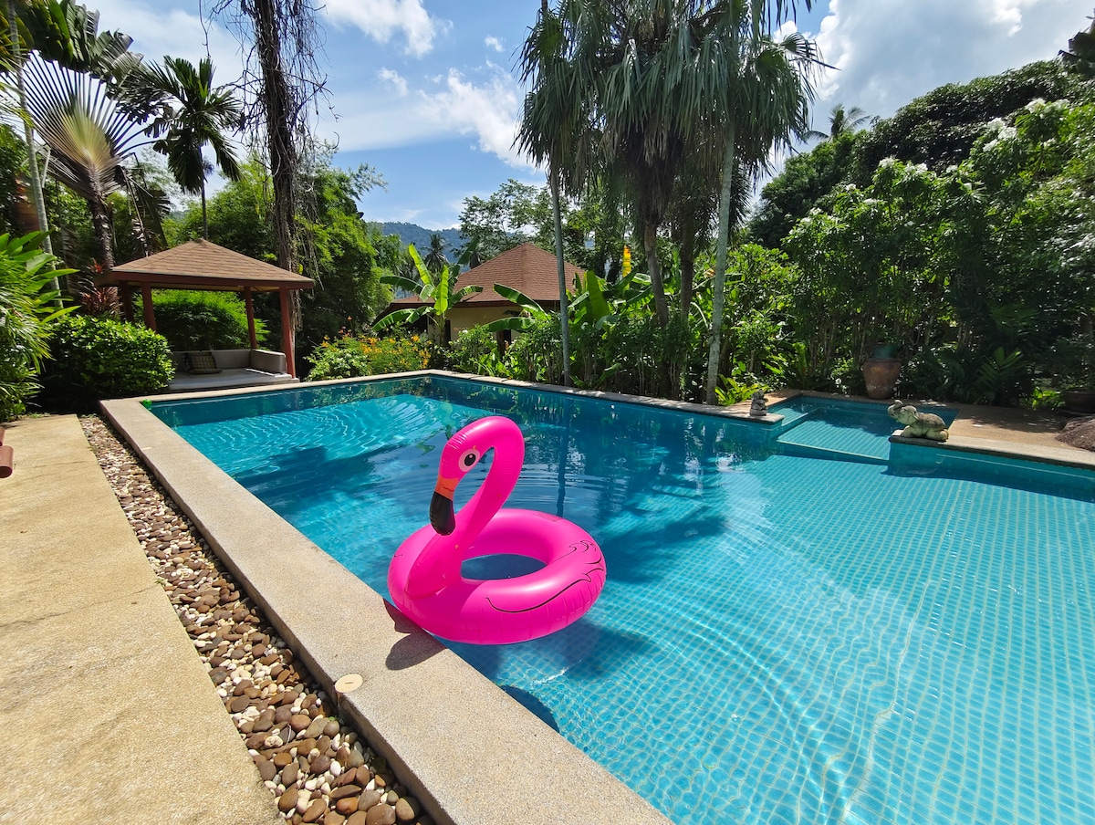 CHARMERENDE OG HYGGELIG BOLIG Oplev vores lille paradis i Lamai, der ligger i udkanten af skoven, kun 3 km fra byens centrum og 3 km fra en af de smukkeste strande på øen. Det er en unik ejendom: en bungalow til 2 personer med en kingsize seng, et privat åbent badeværelse, en privat terrasse, en frodig have og en swimmingpool! Du har kun ét mål: at nyde det! Svømmebassin på 12m x 6m venter på dig! Det perfekte sted at slappe af! Rengøring er inkluderet hver dag