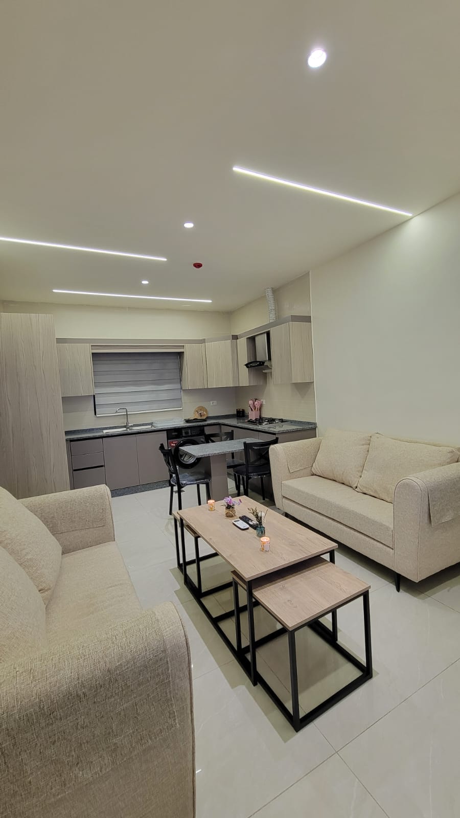 Moderne luksus i hjertet af Amman. Denne rummelige lejlighed med 3 soveværelser og 2,5 badeværelser har plads til op til 8 gæster med elegante marmorgulve, LED-belysning og en stilfuld åben stue. Højdepunkterne omfatter et tilpasset tysk køkken med førsteklasses apparater, vaskemaskine/tørretumbler i enheden og en privat balkon med siddepladser til fem og en gynge. Med aircondition i alle værelser og højhastigheds-wi-fi er det det perfekte ophold for familier, forretningsrejsende eller grupper, der søger komfort og stil.