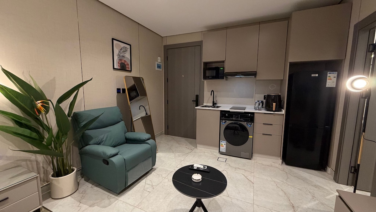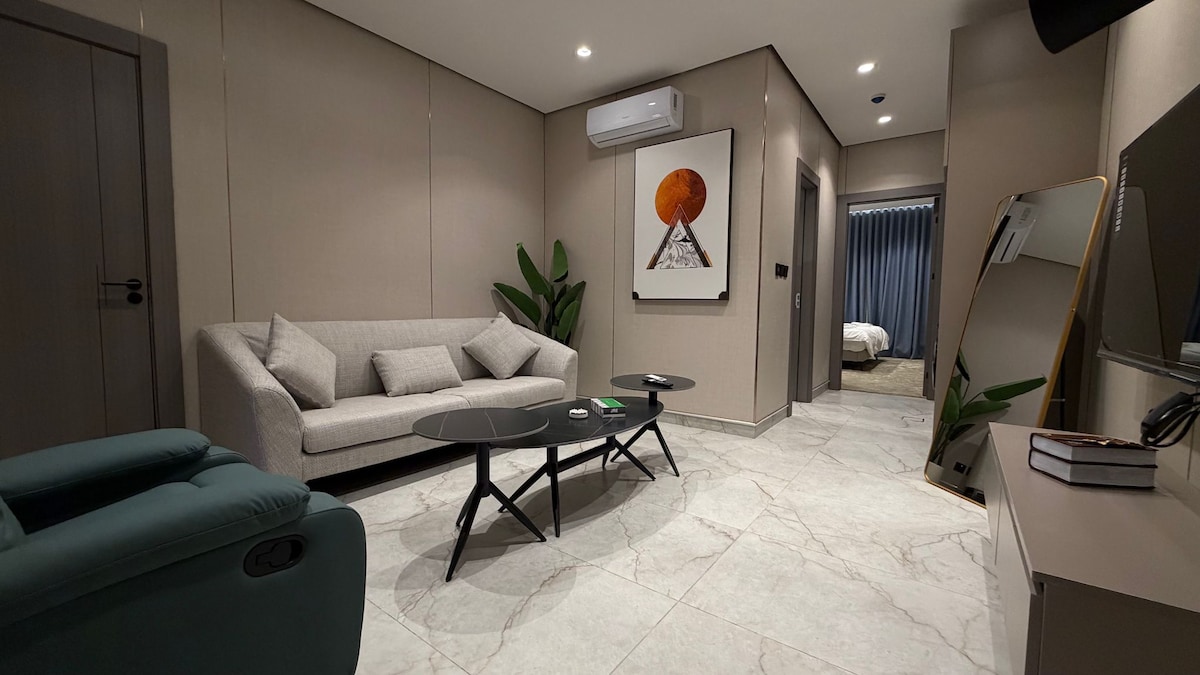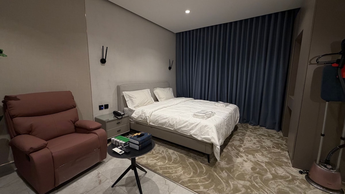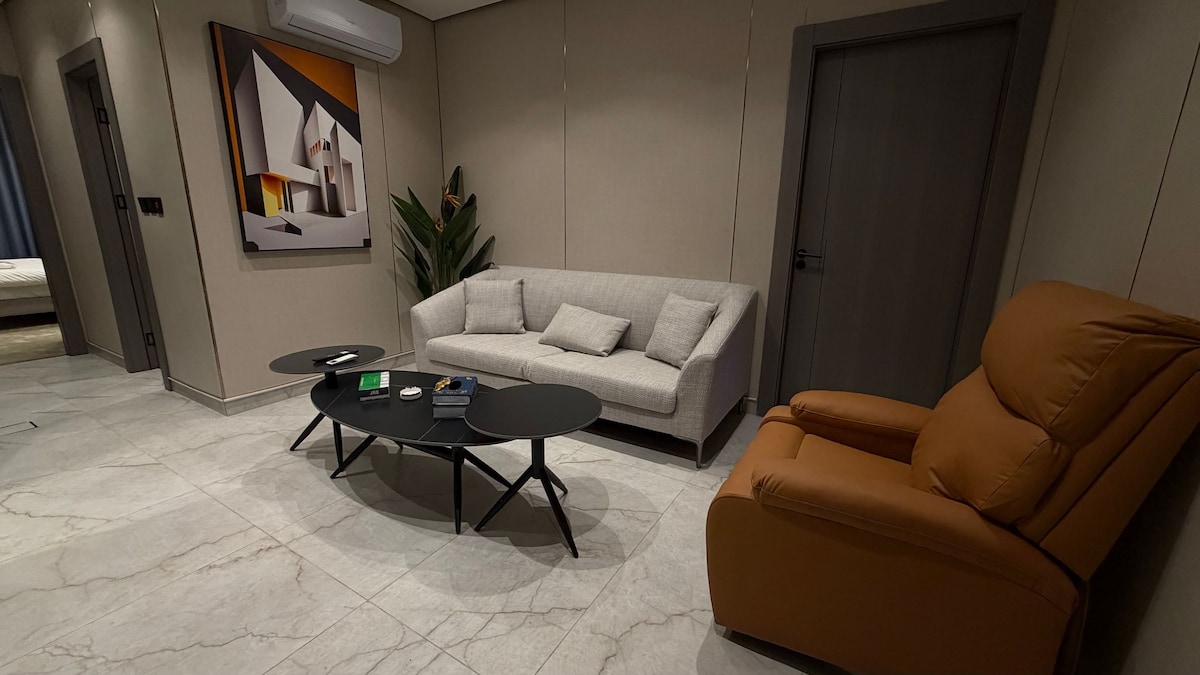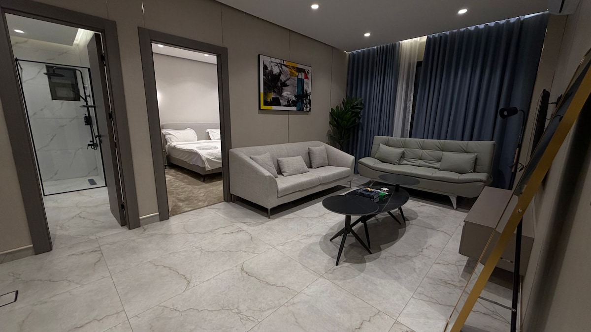Welcome to your modern retreat in the heart of Amman, Jordan. This stylish 1-bedroom apartment offers a perfect blend of comfort and convenience, ideal for both business travelers and tourists. Step inside to discover a thoughtfully designed space that promises a memorable stay. The apartment features a spacious bedroom with a king-sized bed, ensuring a restful night's sleep. The kitchenette is fully equipped with an electric kettle, electric and gas ovens, a coffee machine, fridge, freezer, and microwave, allowing you to prepare your favorite meals with ease. Enjoy the luxury of a full bathroom with a standard bath, separate shower, and toilet. The apartment is fully accessible for wheelchairs, ensuring comfort for all guests. Stay connected with complimentary wireless internet, and make use of the provided washing machine for your convenience. Unwind in the living room, equipped with satellite/cable TV, a TV, telephone, and a cozy sofa. The TV room offers additional entertainment options, while the fitness room allows you to maintain your workout routine. Take in the stunning city view from the terrace, a perfect spot to relax and enjoy the fresh air. Safety is our priority, with bedding and towels washed above 60°C, hand sanitizer provided, and professional cleaning services ensuring a hygienic environment. The apartment is equipped with electric heating and partial air-conditioning to keep you comfortable throughout your stay. Located in a prime area of Amman, you'll have easy access to popular attractions such as the Citadel, Roman Theatre, and Rainbow Street, known for its vibrant cafes and shops. With free parking available, exploring the city has never been easier. Book your stay at this exceptional apartment and experience the best of Amman in style.