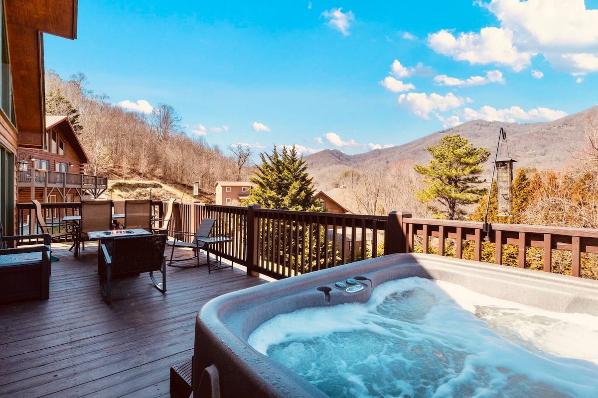 Fantastisk bjælkehytte rangeret i TOP 1 % AF BOLIGER på Airbnb, der tilbyder betagende udsigt over Smoky Mountain og masser af plads til op til 16 gæster. Dette rummelige tre-etagers retreat har 3 soveværelser, 3,5 badeværelser, en veranda med gyngestole, udendørs spisestue, et spabad, bålplads, grill og et spilrum med billard, bordfodbold, dart og Pac-Man. 15 minutter til vandfald, 5 minutter til Cataloochee Ski & Tube World, 25 minutter til Harrah's Casino og 40 minutter til Biltmore Estate. RABAT Militær, beredskab og lærer.