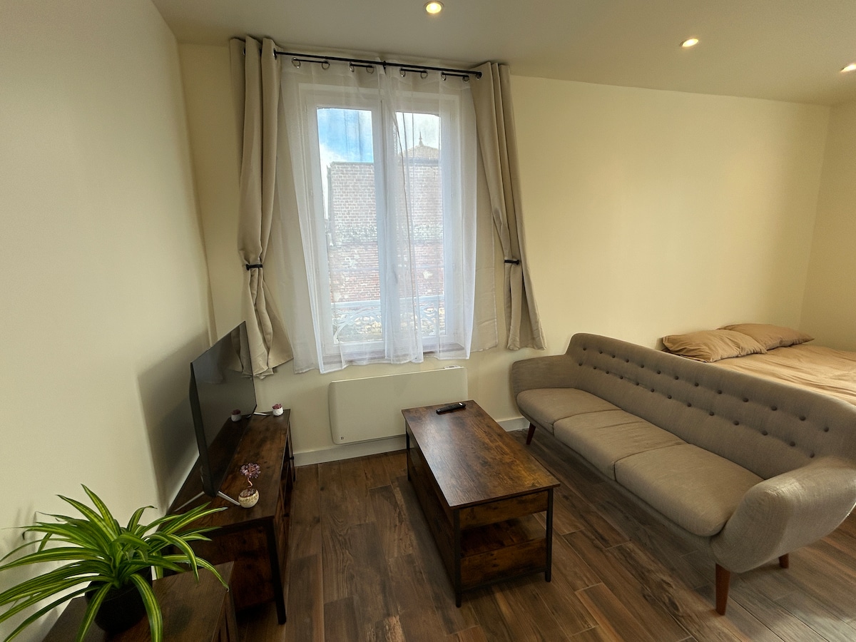 Bienvenue au Nid Douillet – Confort & sérénité Logement entier de plain-pied, lumineux au coeur de l'Oise À 5 min à pied de la gare (liaison Paris) et du centre-ville avec toutes ses commodités, à 5 min du parc, plan d’eau et terrain de jeu, et 5 min de la salle des fêtes. -Chambre lit double -Salon lumineux -Coin bureau -Cuisine équipée -Salle d’eau - Terrasse privatisée pour profiter du calme et des beaux jours. Parfait pour escapade ou séjour professionnel.