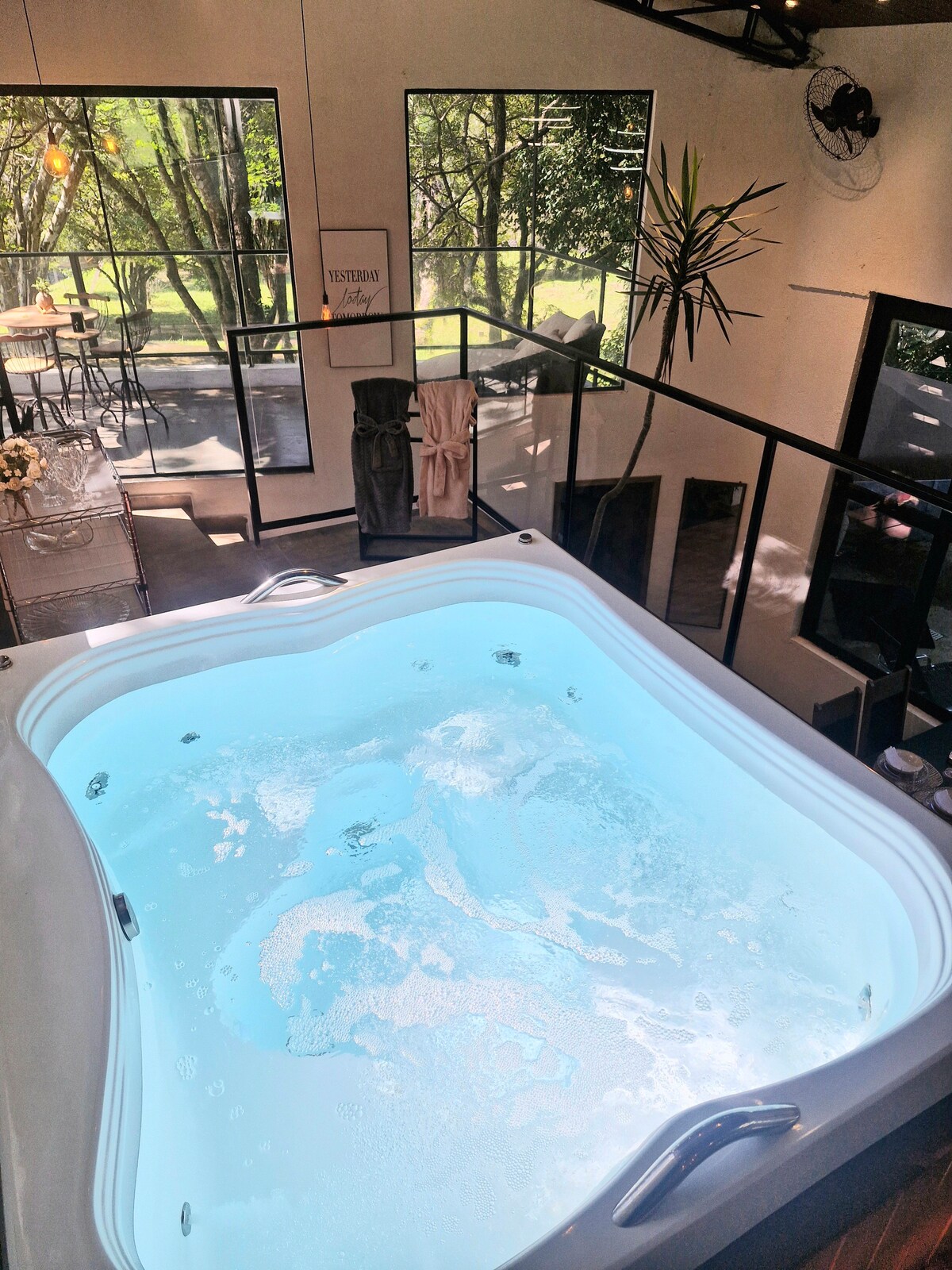 ✨ Venha viver momentos únicos ✨ Apenas 30 min de SP, mas com a sensação de estar em outro país... 🇫🇷 Um refúgio de charme francês, rodeado por natureza e silêncio, com DUAS JACUZZIS PRIVATIVAS e arquitetura de tirar o fôlego! 🏰💦 Uma jacuzzi no deck do mezanino, cercada por vidro e vista para o verde, e outra jacuzzi externa, perfeita para relaxar sob o céu da Cantareira. Design único! 🌿 No Nostro Villaggio, respeitamos a natureza, os animais e à diversidade Viva essa experiência! 💫