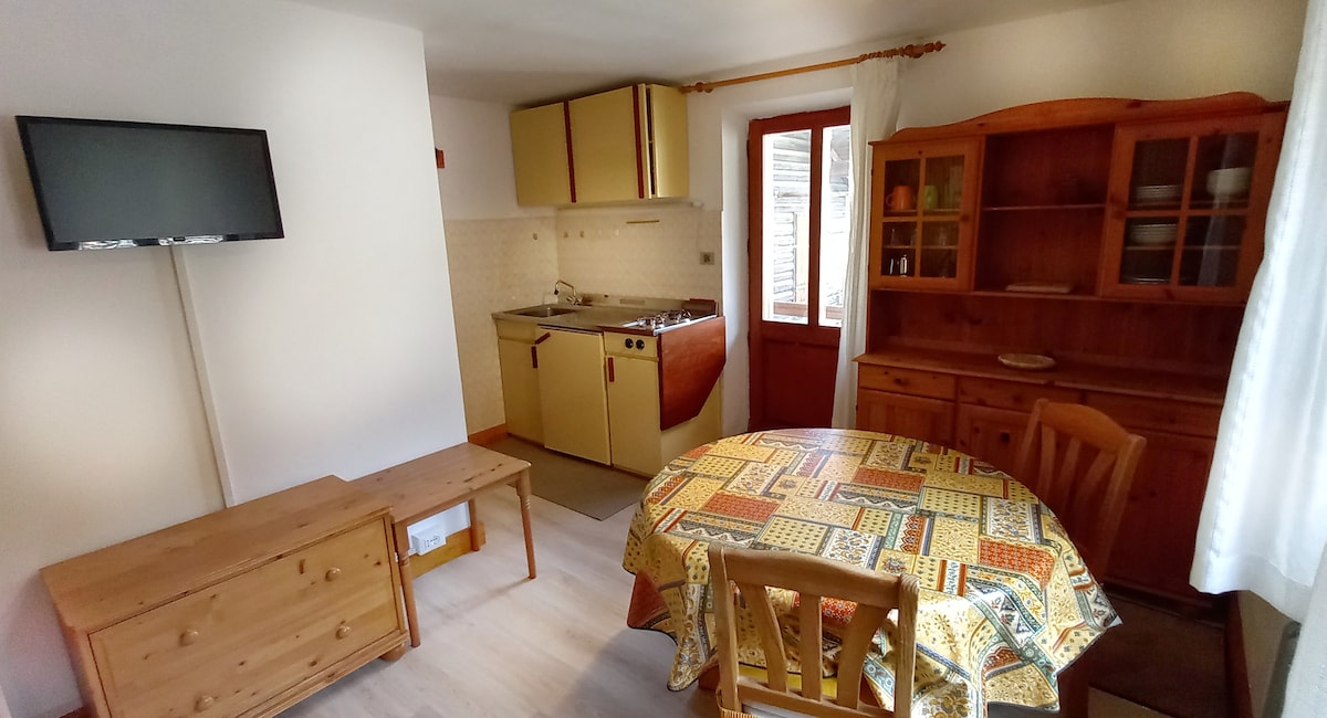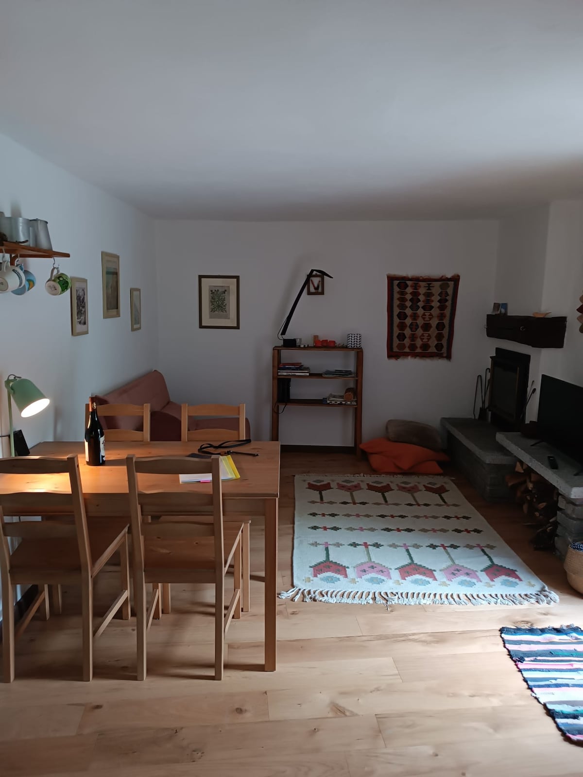 Studio simple mais agréable et lumineux, parfait pour une personne qui désire passer des vacances tranquilles. Le logement est situé au premier (et dernier) étage d'une maison typique de montagne, il dispose d'une entrée indépendante et est pourvu d'un grand balcon. Situé sur les hauteurs du vieux village, au calme, il se trouve à quelques pas du centre (5min. par le raccourci piéton), du départ des sentiers et des pistes (ski de fond et alpin).