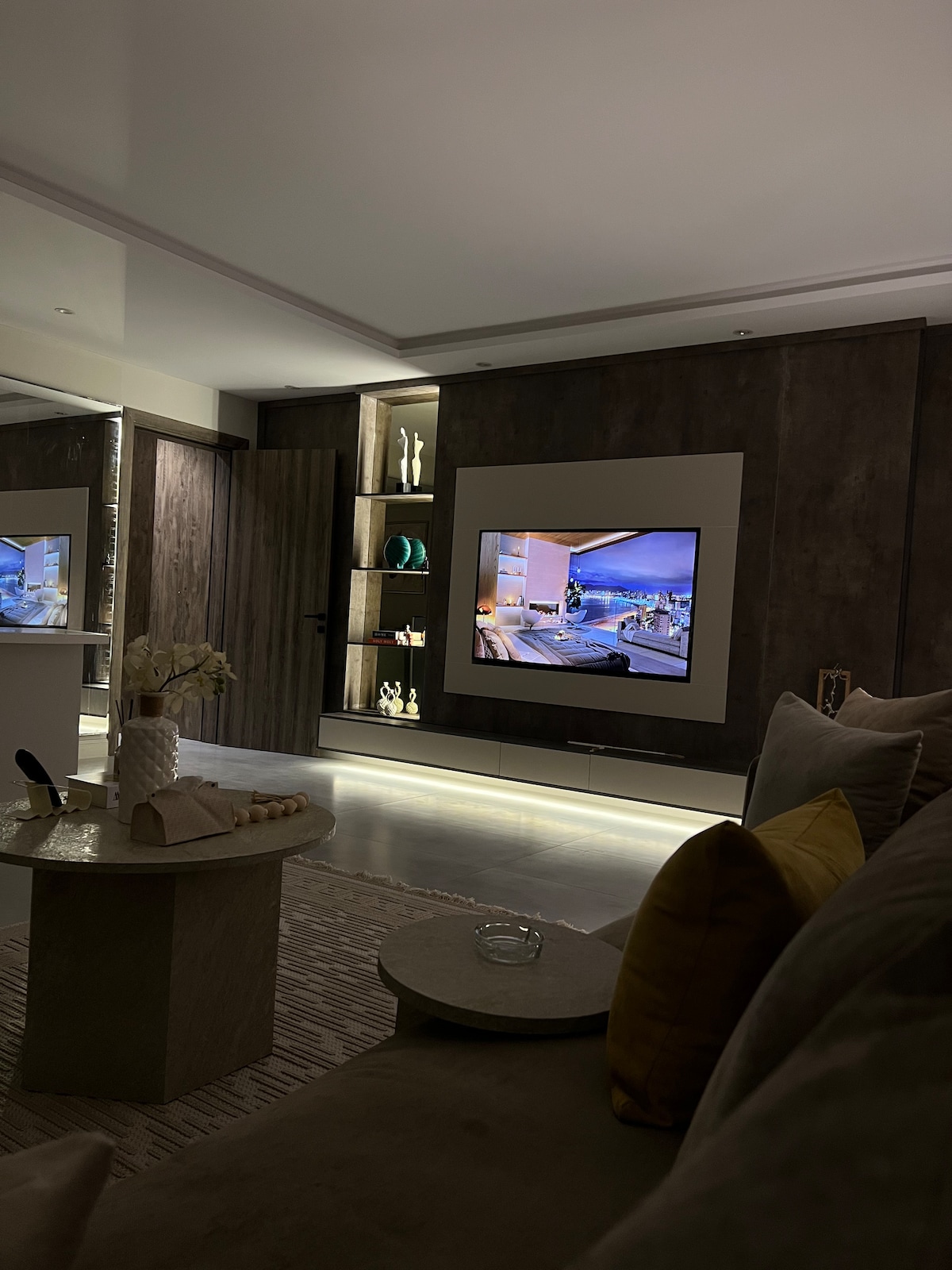 En luksushotellejlighed med ✔️ kvalitet, raffinement og luksus i de fineste detaljer af møbler og central aircondition. ✔️ Lejligheden indeholder : -4 komfortable soveværelser ( 3 dobbeltsenge ) - 3 rummelige badeværelser og udendørs indendørs vaskeri. - En rummelig lounge i Ashleys komfort og også med strækbare gyngestole, hvor du kan slappe af . - herunder køkken, stort bord , stort køleskab, ovn, mikrobølgeovn , kogeplade _Indeholder et separat vaskerum med en automatisk vaskemaskine og et kiwi-bord. ✔️ Den er ideel til familier og pilgrimme med hensyn til plads og komfort .