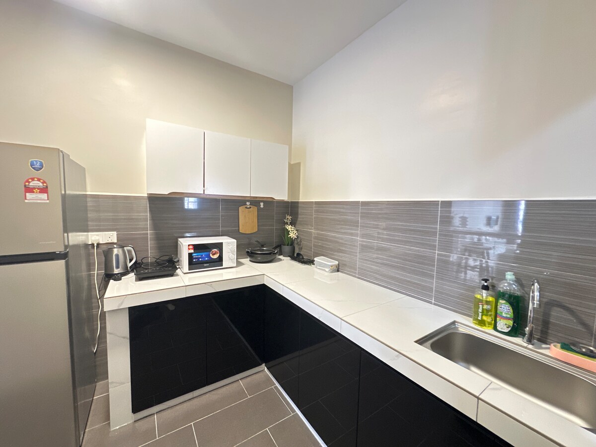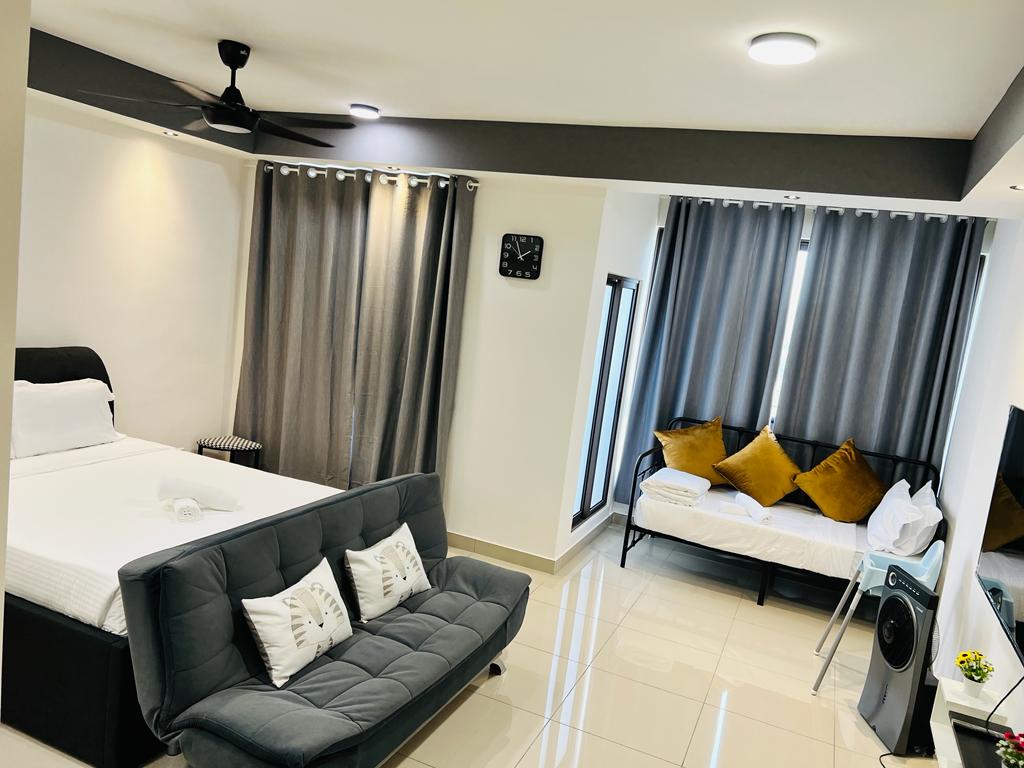 Hvor mange personer kan bo her: Lejligheden kan rumme 4 personer og er stadig behagelig for 6 personer. Den ligger i hjertet af Melaka City og kun 3 km fra den historiske bygning A'Famosa og Studthuy's Building. Faciliteter: Gratis parkeringsplads til 1 bil på niveau 2. Andre kan parkere i stueetagen. Liste over faciliteter, der tilbydes i huset: Denne stilfulde lejlighed har 2 queen-size senge & 1 queen-size foldbar sovesofa, 1 ekstra toto, 60" LED android TV, WI-FI, osv.