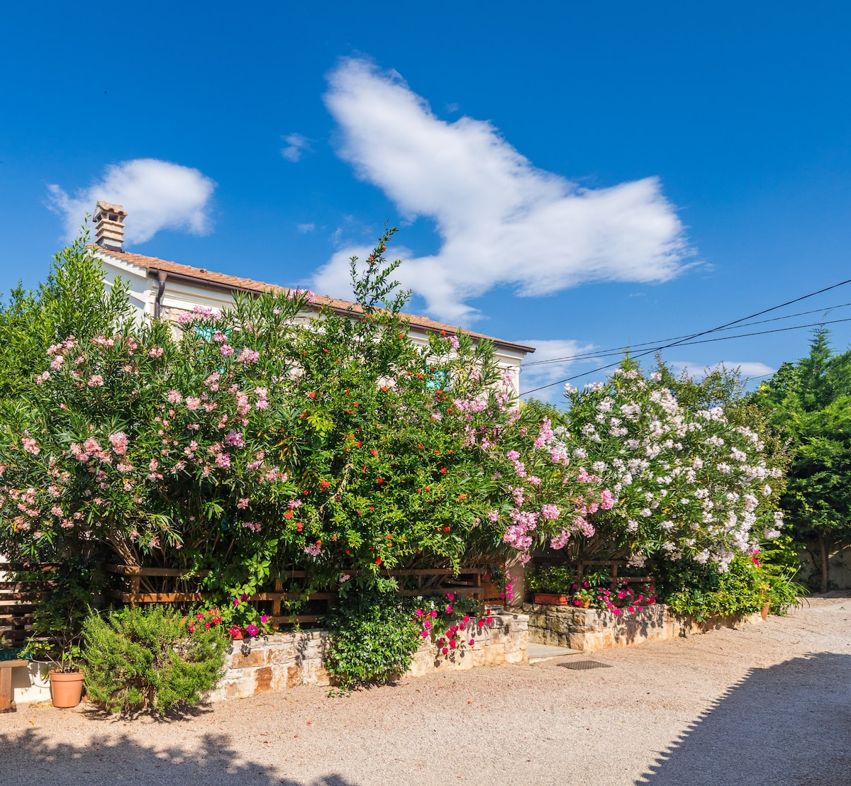 Et gammelt, indhegnet og FULDT AIRCONDITIONERET landsted med et strejf af landlig flair,sjæl og charmerende detaljer. Der er omgivet af blomster og greeness. Det er meget elsket, værdsat, og jeg håber, du vil føle dig lige som hjemme. Se vores faciliteter. Poolområdet er rummeligt og skjult for alt det udseende. Dagligvarebutikken ligger i nærheden. Hvert år investerer vi i noget nyt, så det er meget veludstyret. Dagligt kæledyrsgebyr 20 euro pr. kæledyr, der skal betales kontant ved ankomsten.