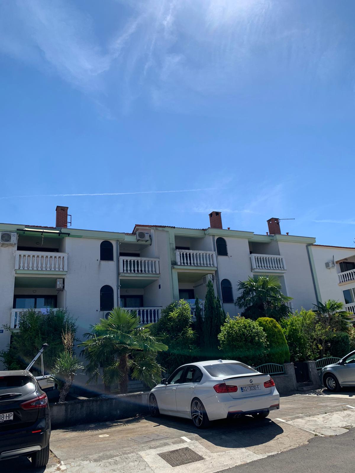 Lejligheden ligger i husets stueetage, omgivet af grønne områder og har en kølig terrasse. Til stranden 150 m, til centrum og butikker ca. 300 m. Parkering i gården. Lejligheden har to værelser, et større med en dobbeltseng og et mindre med to enkeltsenge. Køkkenet er udstyret - køleskab, frisør, mikrobølgeovn, kedel, gaskomfur, service og bestik. Badeværelse med bruser og toilet. Aircondition. Kæledyr er velkomne (5 € /dag). Turistskat per person 1,5 € /dag. Min telefon: +385915492611
