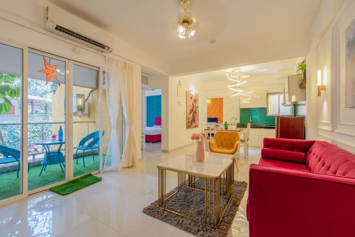 Chic 1BHK | Palm View | WFH | Huge Balcony