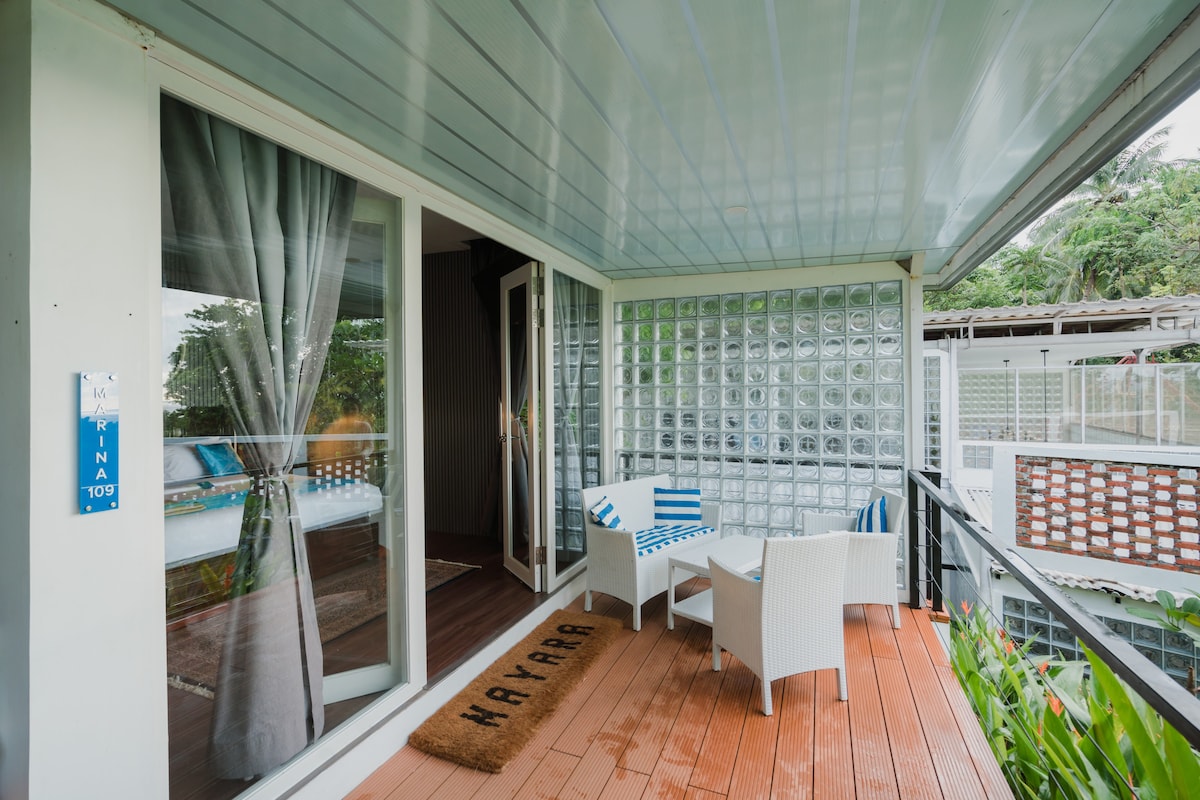Discover tranquility in our Marina Ocean View Balcony Room — designed for guests who seek the perfect blend of comfort, privacy, and nature. Wake up to sweeping views of the ocean and lush greenery right from your private balcony, surrounded by the soothing sounds of tropical birds and the sea breeze.