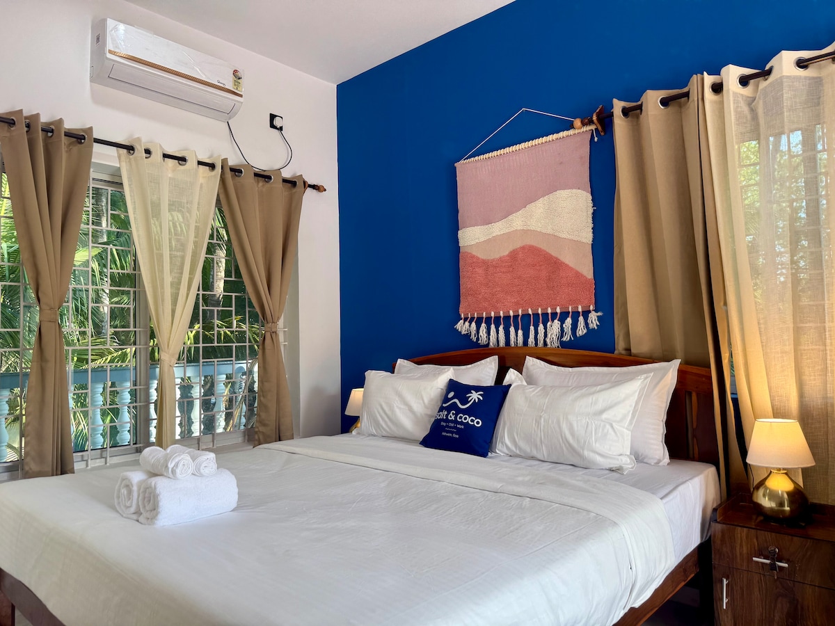 Velkommen til denne luksuriøse studio til 4 med pool i vores boutique-hotel, der kombinerer stil med enkelhed for at give dig den "derhjemme" følelse, du ønsker. Med et hyggeligt rum og en stor komfortabel seng, som du gerne vil synke ned i, lækker mad og visuelle lækkerier overalt, Dette studie lover ikke kun at fange dine øjne, men også dit hjerte. Beliggende i hjertet af North Goa 5 minutter fra Mall De Goa alle andre hotspots, herunder strande, feststeder, historiske steder osv. er i en afstand på ca. 5-15 km.