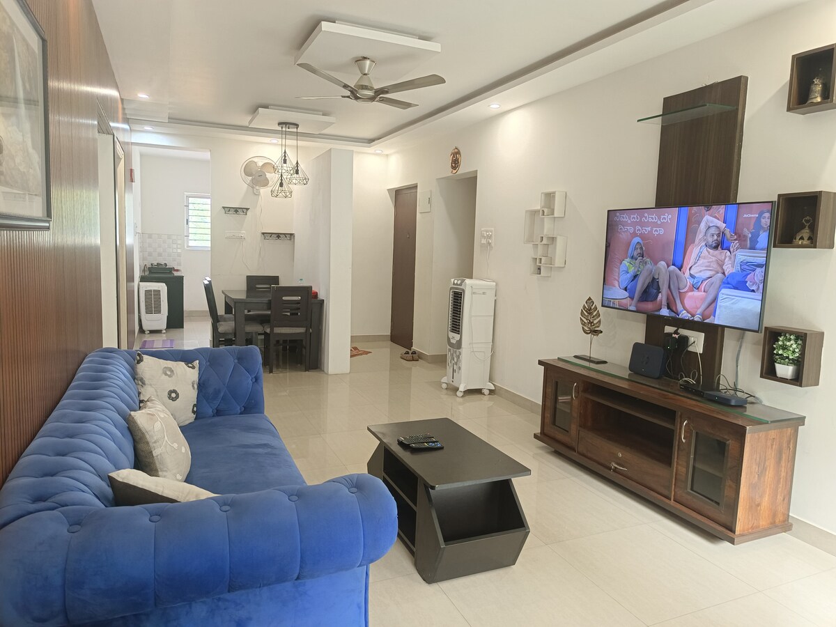 Welcome to your serene getaway! This modern and stylish 2-bedroom apartment offers everything you need for a relaxing stay and also is near to the main road. The place located around 15mins from railway stations , bus stops, airport and city centre Located in a peaceful neighborhood, this space is perfect for couples, solo travelers, or families. With modern amenities, including high-speed Wi-Fi, air conditioning, and proximity to airport, this apartment offers a luxurious yet homey experience