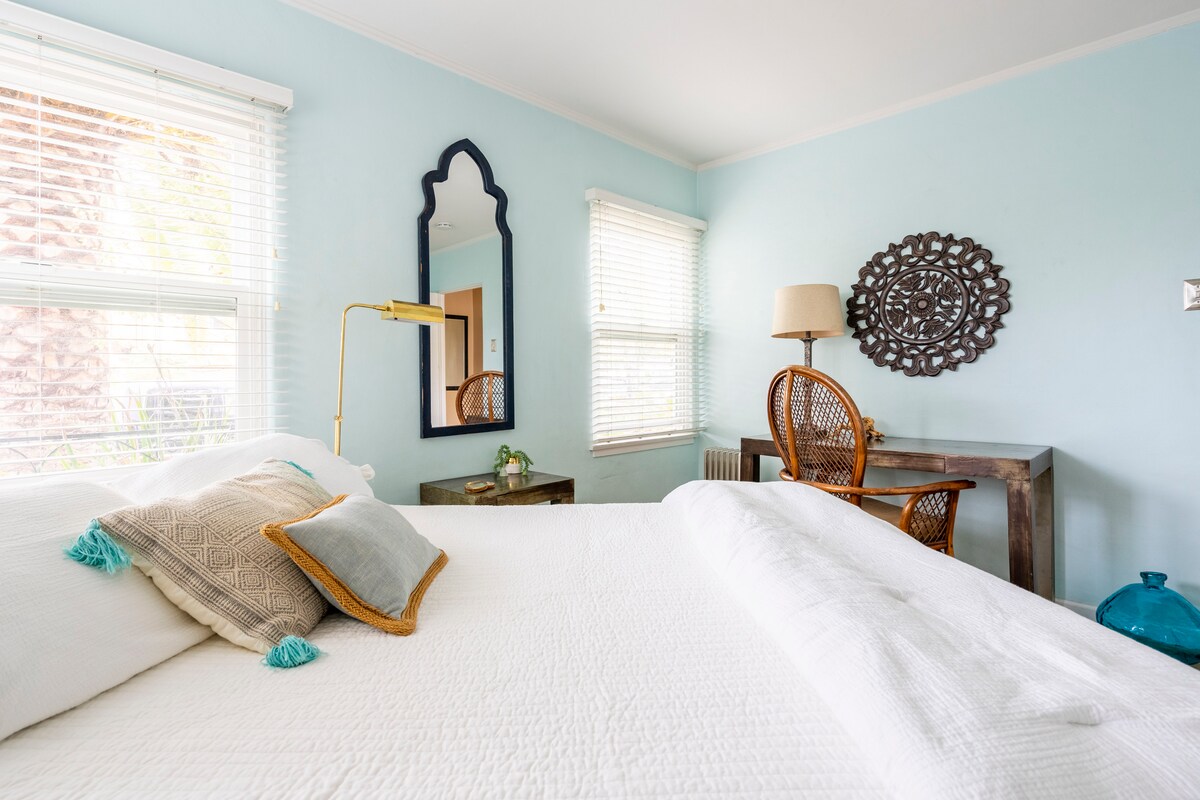 Velkommen til Shell House Venice! Dette rummelige, lyst håndværksbolig fra 1911 med 2,5 soveværelser og 1 badeværelse tilbyder faciliteterne på et boutique-hotel med varme detaljer, der får det til at føles som et hjem. Perfekt til en romantisk weekend, en familietur eller forfatterens tilflugtssted. Den forreste veranda har udsigt over en stor græsplæne med et stakit og er perfekt til en morgenkaffe eller en tidlig afslapning om aftenen. Den private, lukkede baghave tilbyder rolige omgivelser til udendørs spisning og at nyde bålpladsen.
