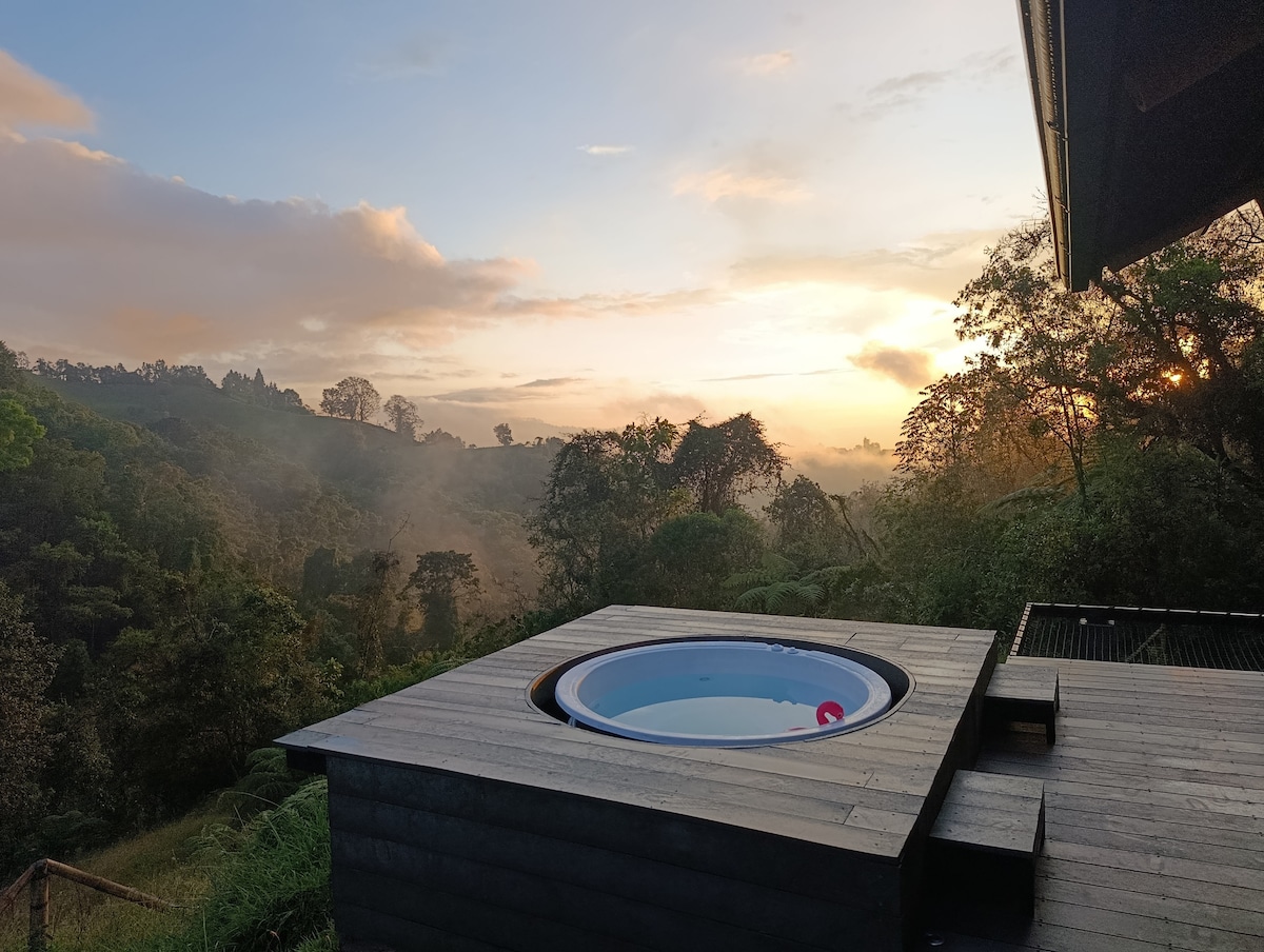 Stay in a dreamy cabin in the middle of the forest. Stroll through trails and gardens, and enjoy the lush natural surroundings and sunsets from your balcony. Gaze keenly at the birds among the trees and enjoy a revitalizing bathing experience surrounded by nature. Located just 25 minutes from downtown Manizales, 15 minutes from Neira, and 40 minutes from El Otoño Hot Springs.