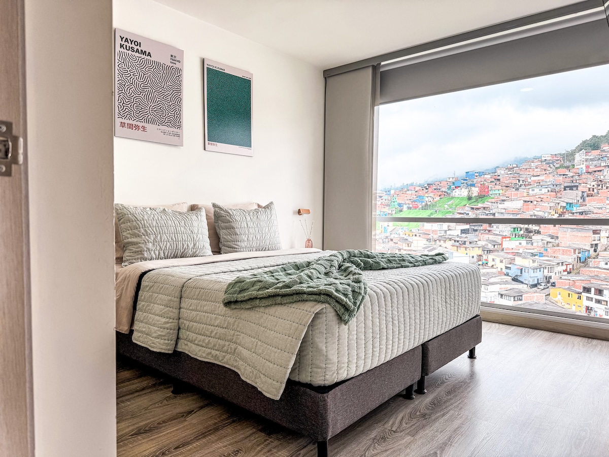 Velkommen til Manizales! Denne hyggelige lejlighed, der ligger mellem El Cable og Milano, er ideel til at udforske regionens naturlige vidundere og nyde de mest pulserende områder i byen. Du har adgang til en terrasse med 360 graders panoramaudsigt, perfekt til at slappe af på efter en dag på opdagelse. En urban oase i hjertet af byen venter på dig!